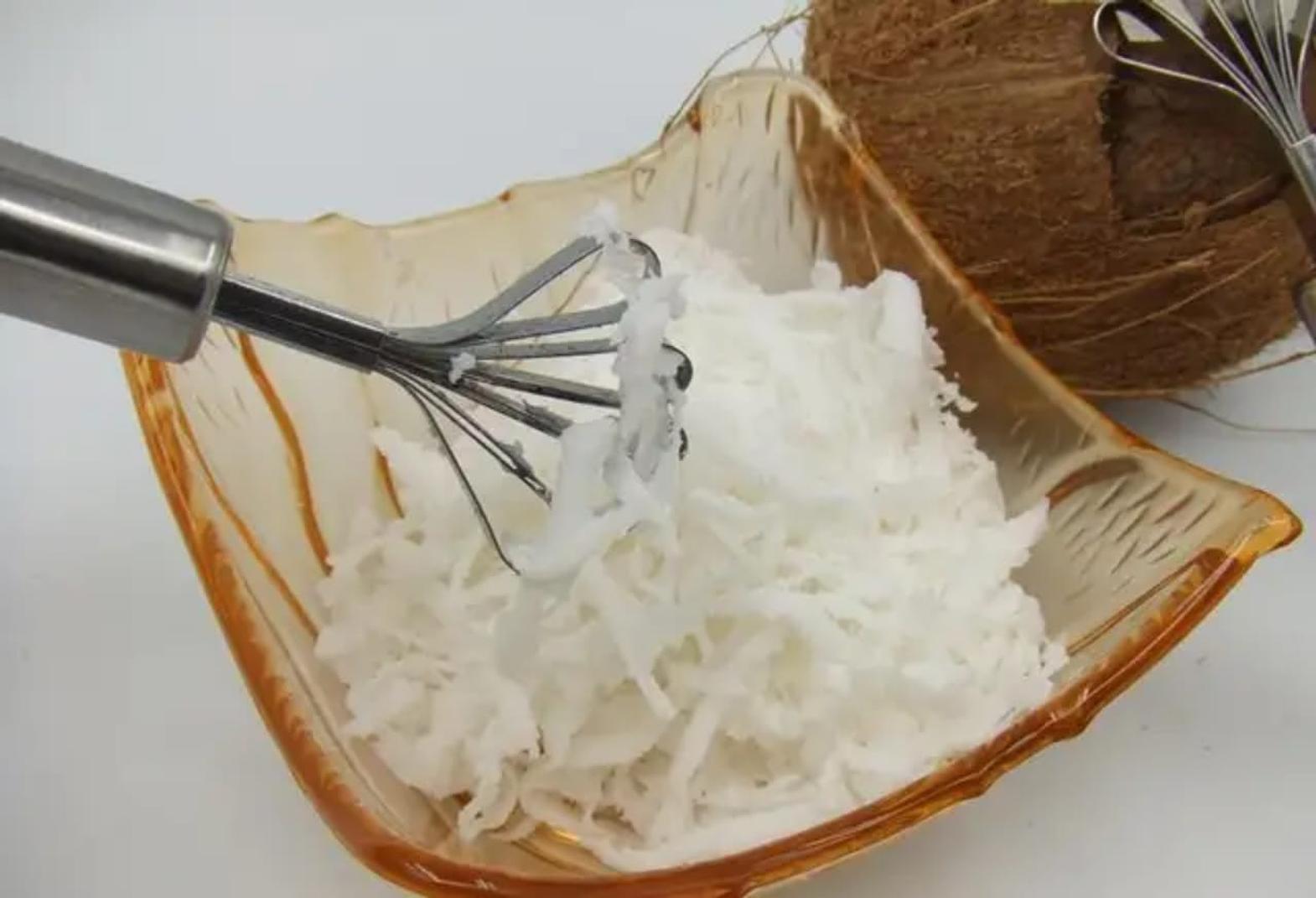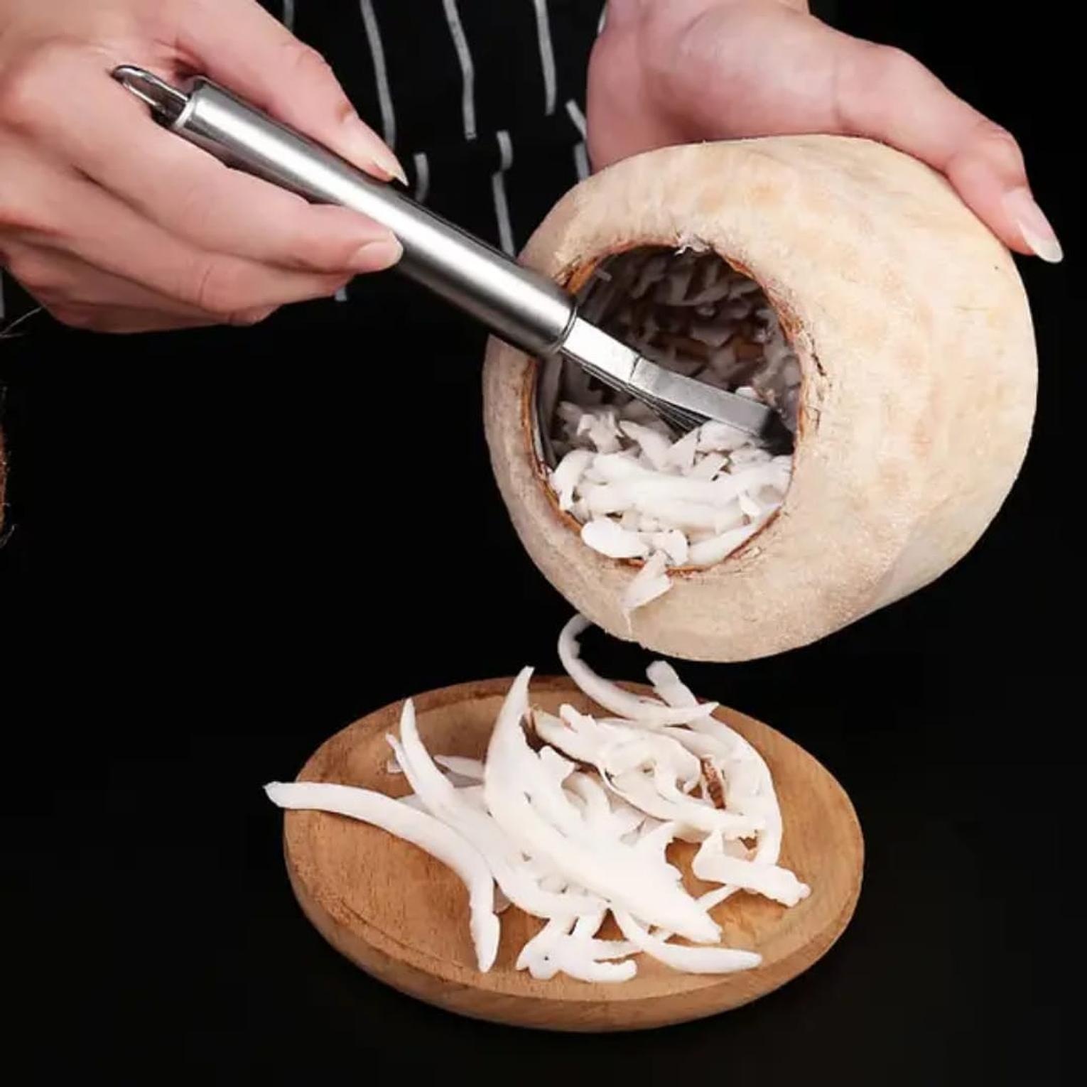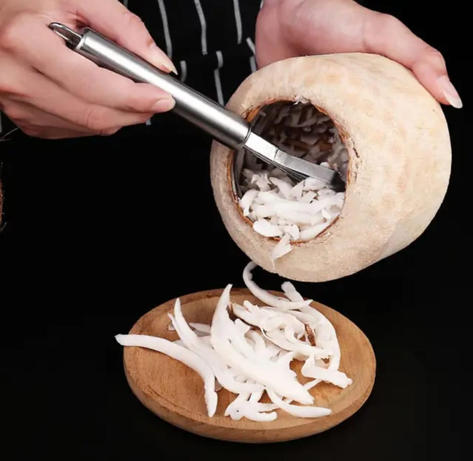 Stainless steel coconut scraper and grater stainless steel coconut grater hard stainless material easy to use and clean 100% brand new and high quality easy to operate, safe and reliable. a must have and necessity in the kitchen. item type: coconut meat slice material: stainless steel suitable for coconut stainless steel coconut meat slicer scraper fish scales removal scraper coconut meat removal vegetable tool accessories.