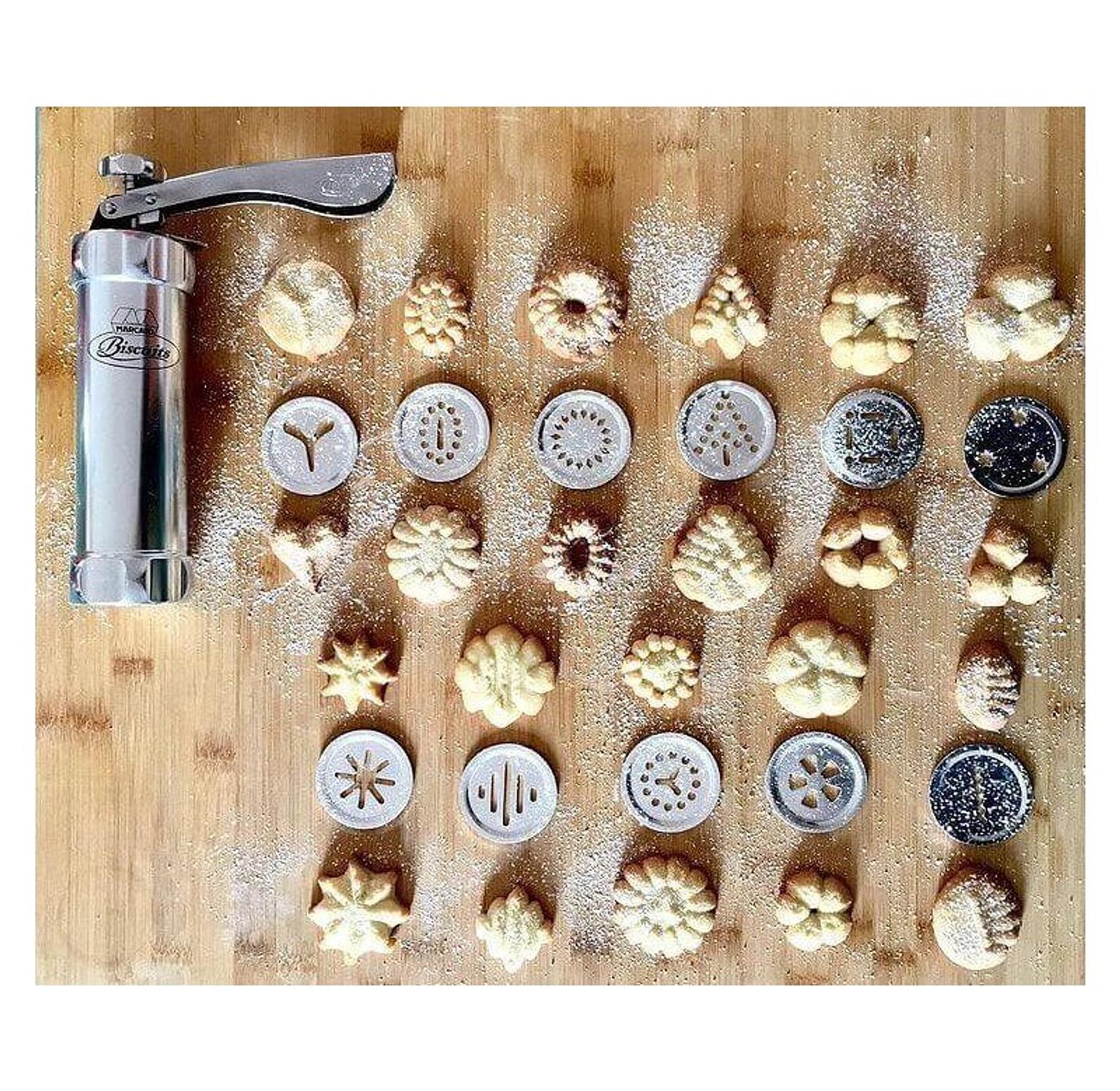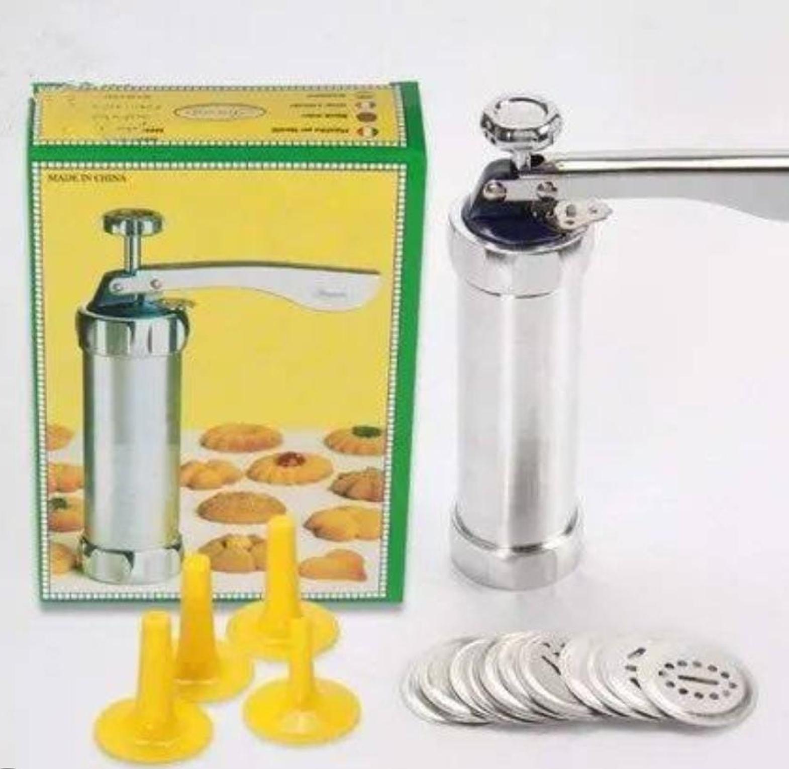 Stainless steel cookie press biscuit maker & icing gun set stainless steel 24 option cookie or biscuit press elevate your baking with this professional 2-in-1 cookie press and cake decorating tool. quickly and easily make uniform biscuits and decorative spritz cookies for your family or side hustle business. the full bakeware kit includes multiple discs for beautiful, consistent shapes and nozzles for elegant icing designs, making it a must-have kitchen gadget in nairobi and across kenya. made of durable stainless steel, this easy-to-use baking accessory saves time and messy cleanup compared to traditional cookie cutters. get your own reliable biscuit maker machine. cookie press price kenya, biscuit maker machine, baking accessories nairobi, cookie gun for sale, spritz cookie press, cake decorating tools, kitchen gadgets kenya.