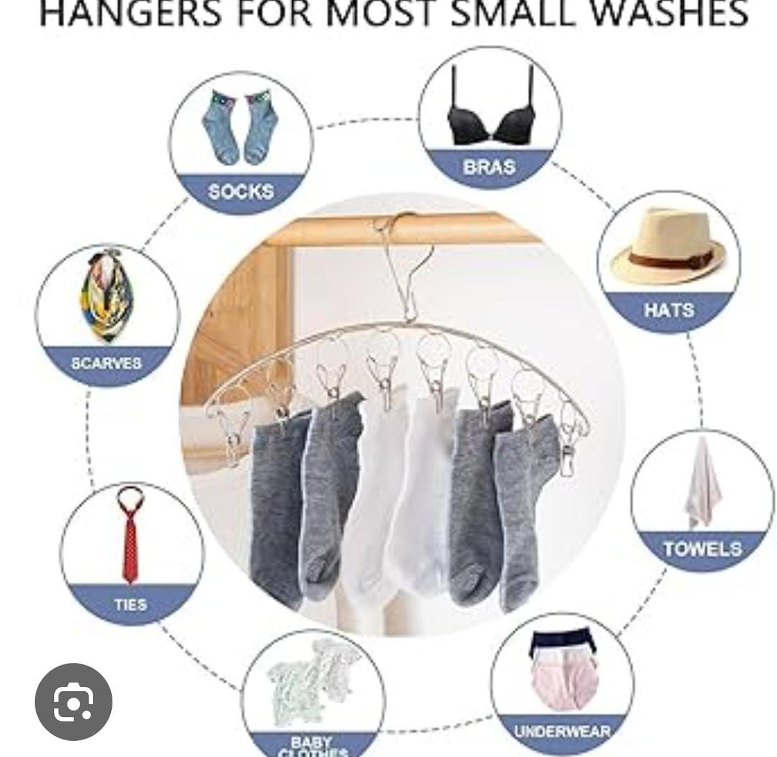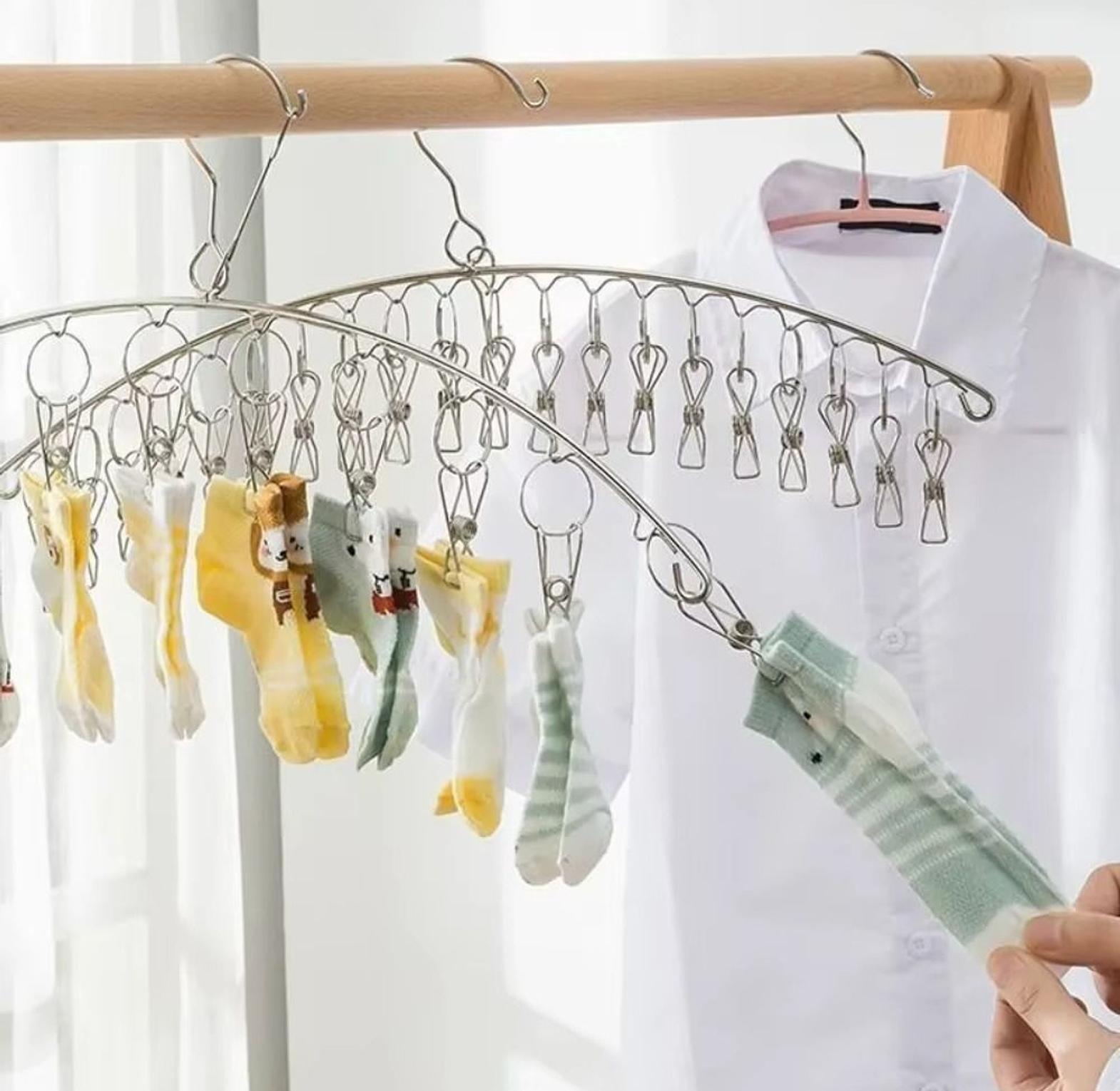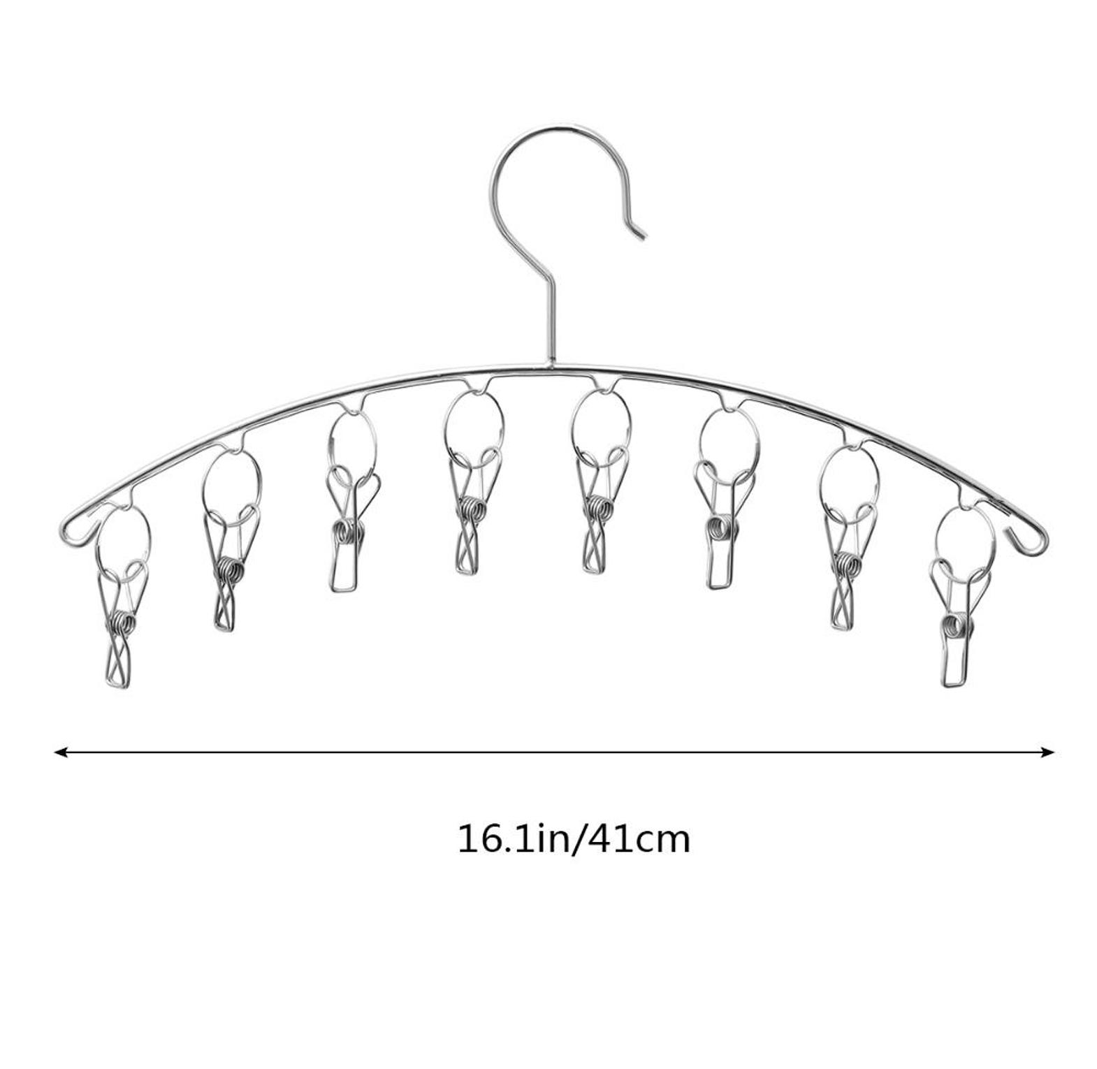 Used to hang socks, ties, underwear and other small clothings. clothes holders. stainless steel sock rack with windproof curved 8-clip solid clothes rack multifunctional dual-purpose clothes rack.