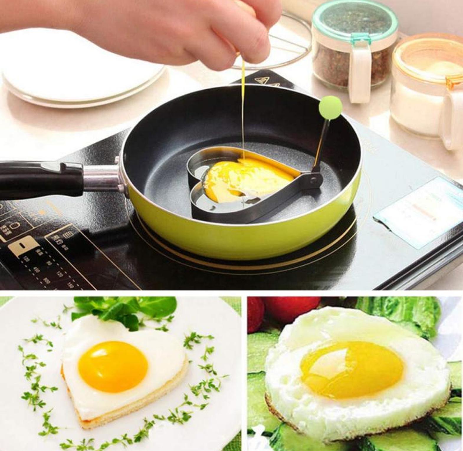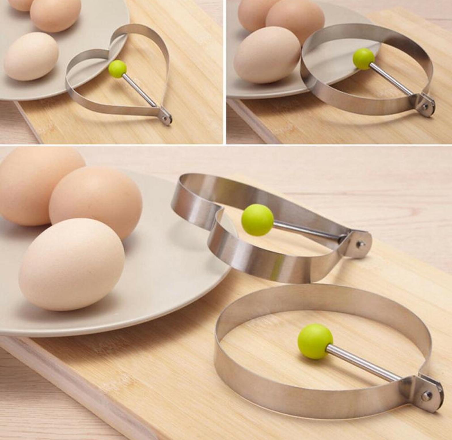 Stainless steel fried egg shaper or pancake mold material:stainless steel. excellent design for cooking difference shapes eggs or pancakes for your lover as well as your family. ideal for making pancakes, crumpets or fried. handle folds for easy storage & easy to use and clean. kitchen accessories stainless steel fried egg shaper pancake mould omelette mold frying egg cooking tools kitchen gadgets