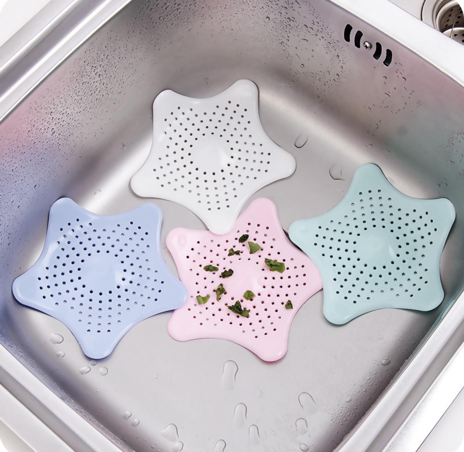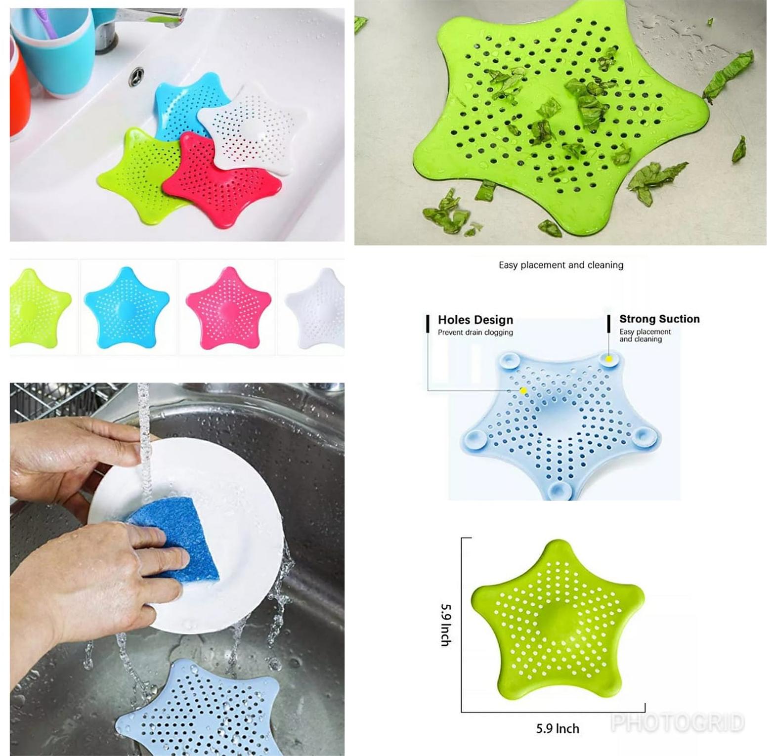 Star shaped sink or bathroom drain strainer easy to use and clean, great ideal for home accessory. high quality material provides strong suction, no shifting.-prevent objects from falling into the drainage. suitable for washbasin washing room ,toilets, bathroom,kitchen bath sink drain hair catcher bath stopper plug sink strainer filter shower sink strainer anti-clogging kitchen accessories.