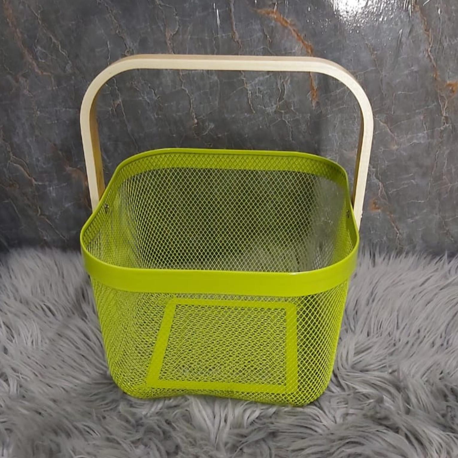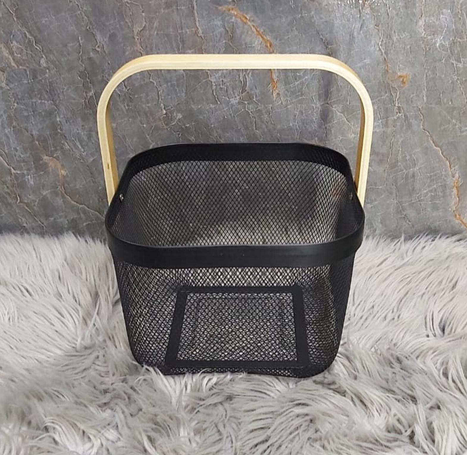 Storage/fruit basket with handles material mesh with bamboo handles size: 18*24*24cm. quality assured.