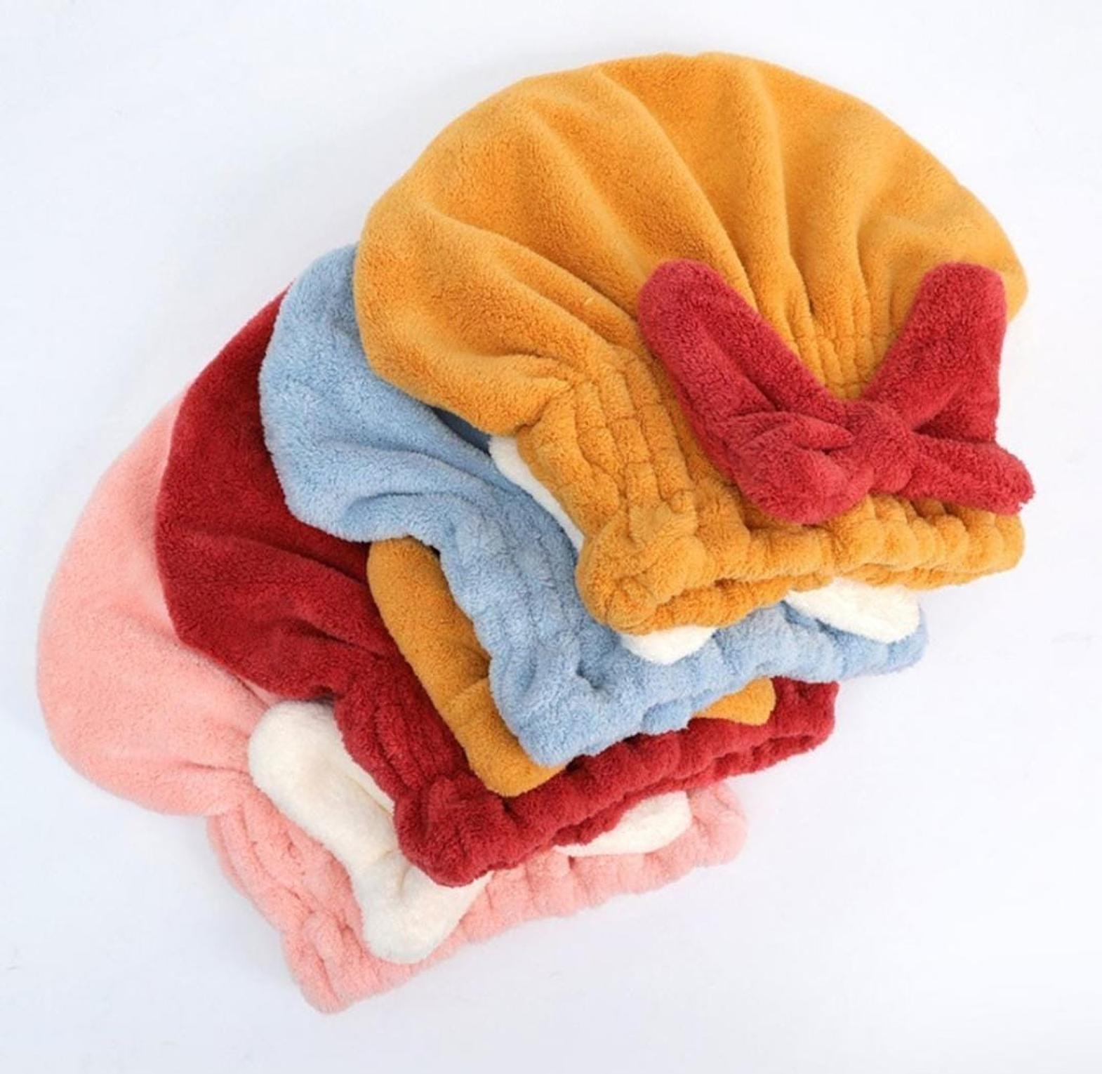 Super absorbent microfiber hair drying towel stretching velvet hair cap cover natural high-quality coral velvet fabric is selected, which is very soft, green and environmentally friendly, comfortable and skin-friendly,soft and fluffy, delicate and smooth, and fresh and comfortable for long-term use. the material is light and breathable, soft and skin-friendly, water-absorbing and quick-drying the shape is cute, soft and comfortable, it absorbs water instantly, and it is not easy to shed hair. microfibre quick hair drying bath spa bowknot wrap towel hat cap for bath bathroom accessories shower cap for women hair cap.