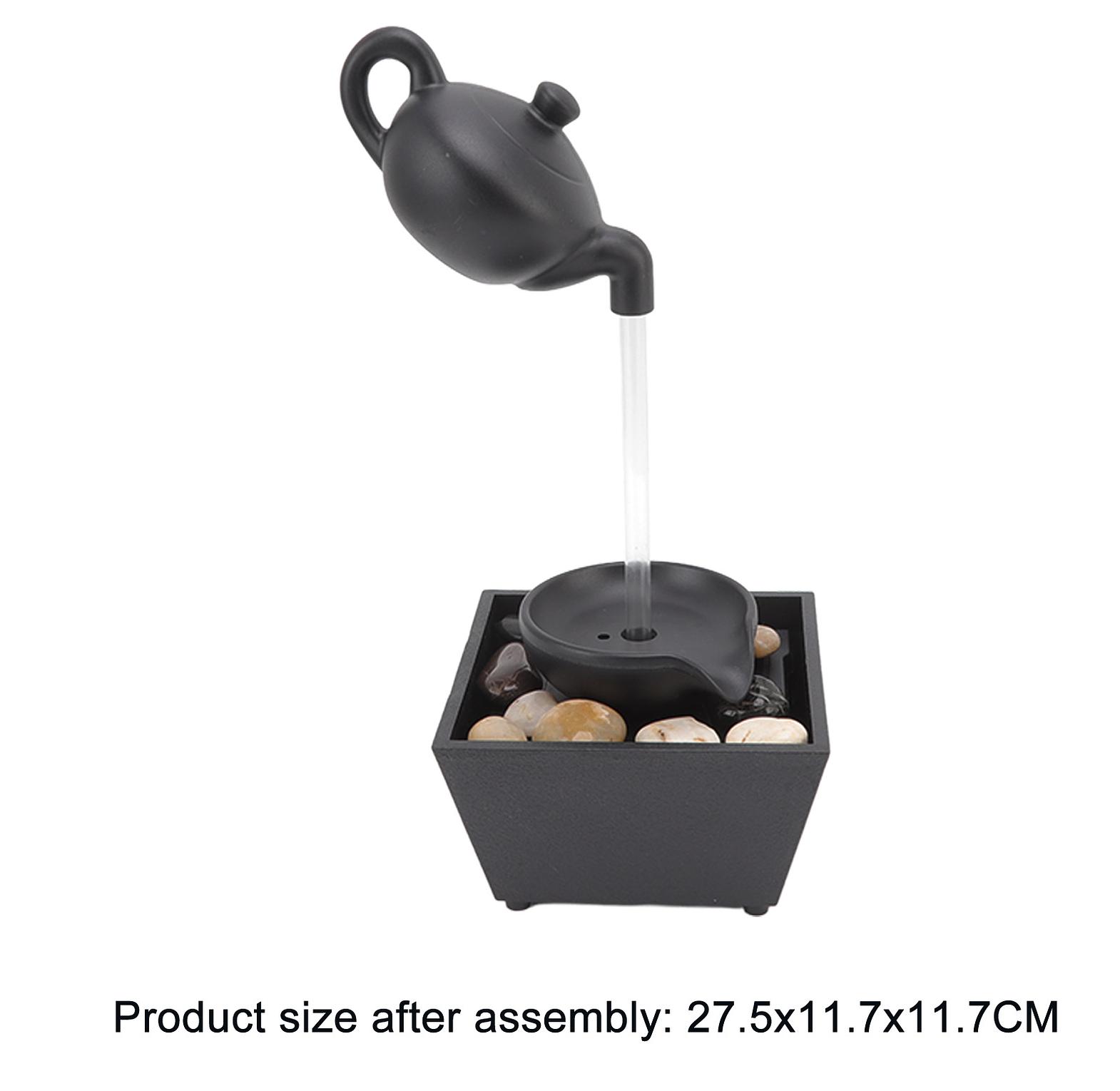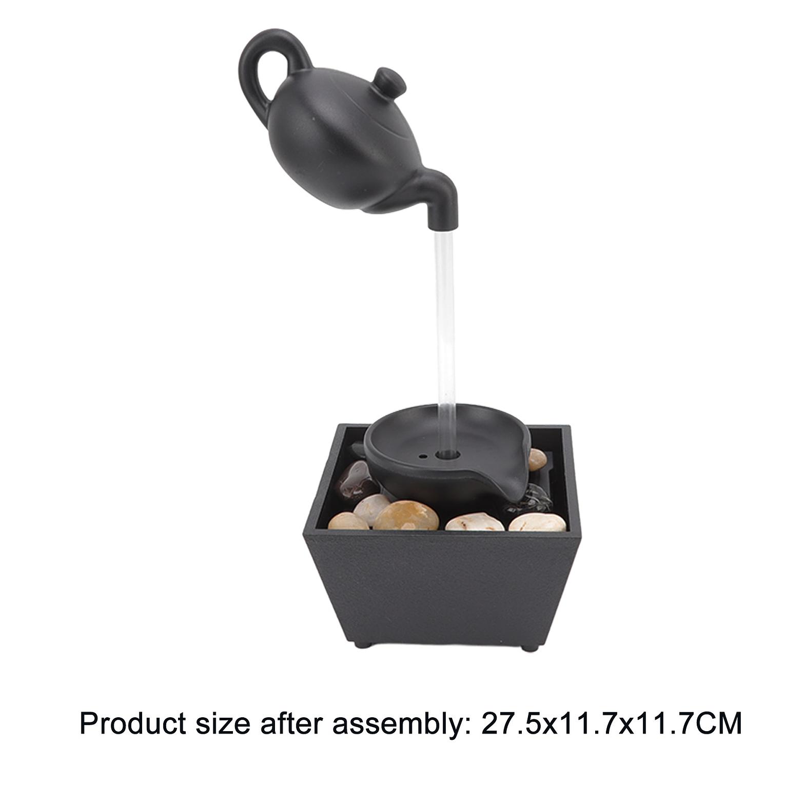 Tabletop floating teapot water fountain or waterfall floating teapot waterfall ornament comes with free pebbles. 1. indoor decoration: as the water gently pours down from the top of the artistic ornament, the fountain will surely become the vivid focus of your bedroom, living room, family, work or office. 2. dual power supply modes: equipped with usb power cord, this desktop water fountain ornament can be be powered by usb plugging in or directly inserting the battery, which is easy to set and use. 3. relaxation: the indoor fountain is a kind of fashionable home decoration, which adds value to any space and will bring surprise to your guests. use it to unwind after a hard day, drift off to sleep, meditate, or practice yoga. usb 5v battery power supply tabletop waterfall decoration with led lights.
