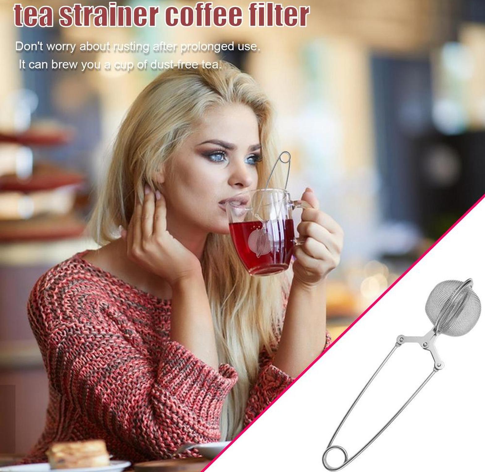 Tea infuser or herb diffuser and strainer steel sieve round closed suitable for sifted flour and other powdered goods. also it's ideal for tea, coffee. suitable for various loose leaf teas, especially medium to large teas such as chamomile tea, ceylon tea, raspberry leaf tea, licorice tea, and most other teas. it is an ideal choice for refreshments, teacups, mugs, and teapots. tea infuser handle tea ball sphere mesh tea strainer coffee herb spice filter diffuser kitchen gadget stainless steel.