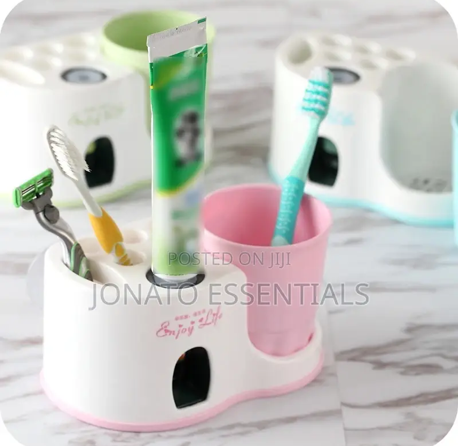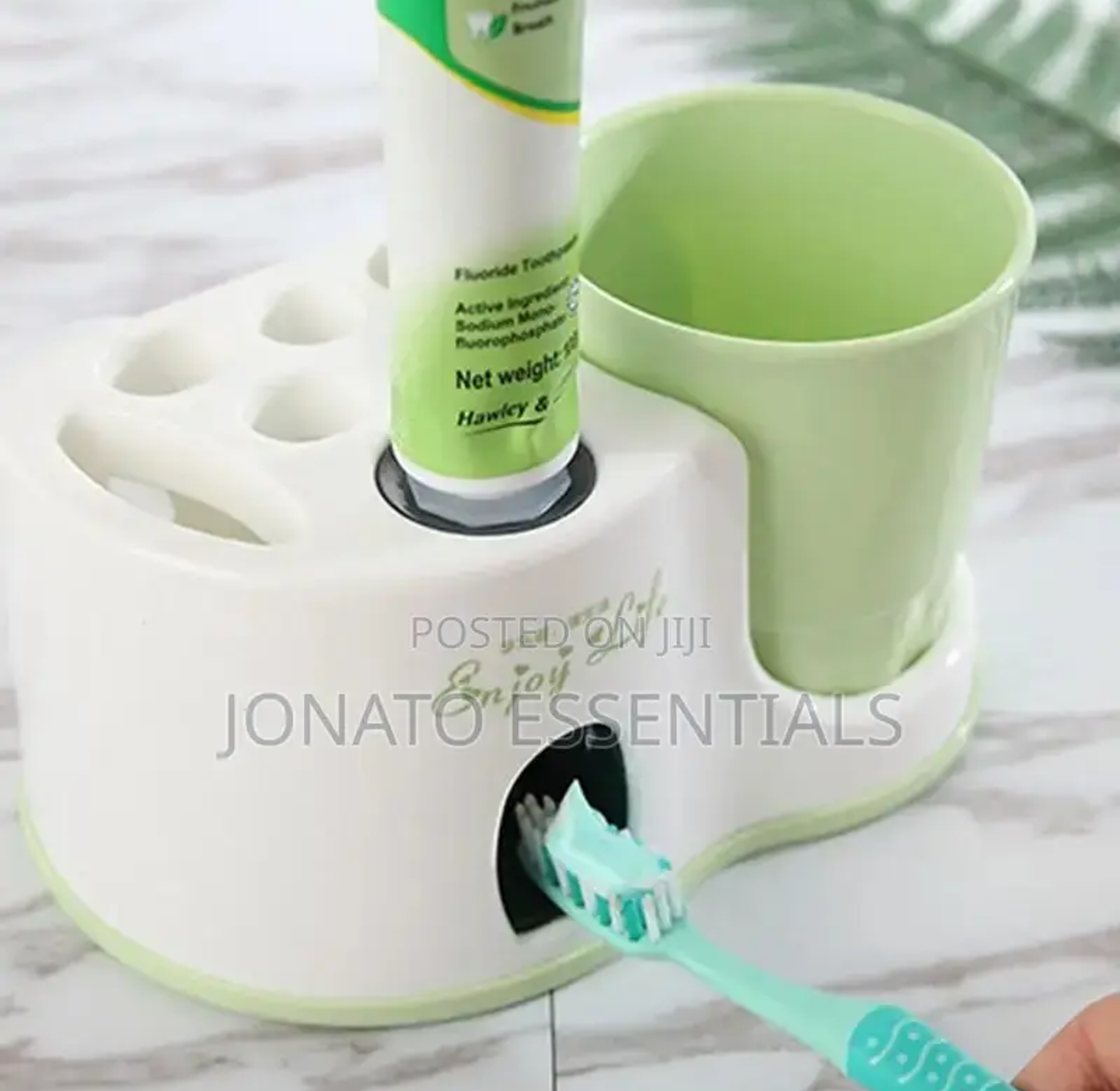 Toothbrush Holder and Toothpaste Dispenser With a Cup