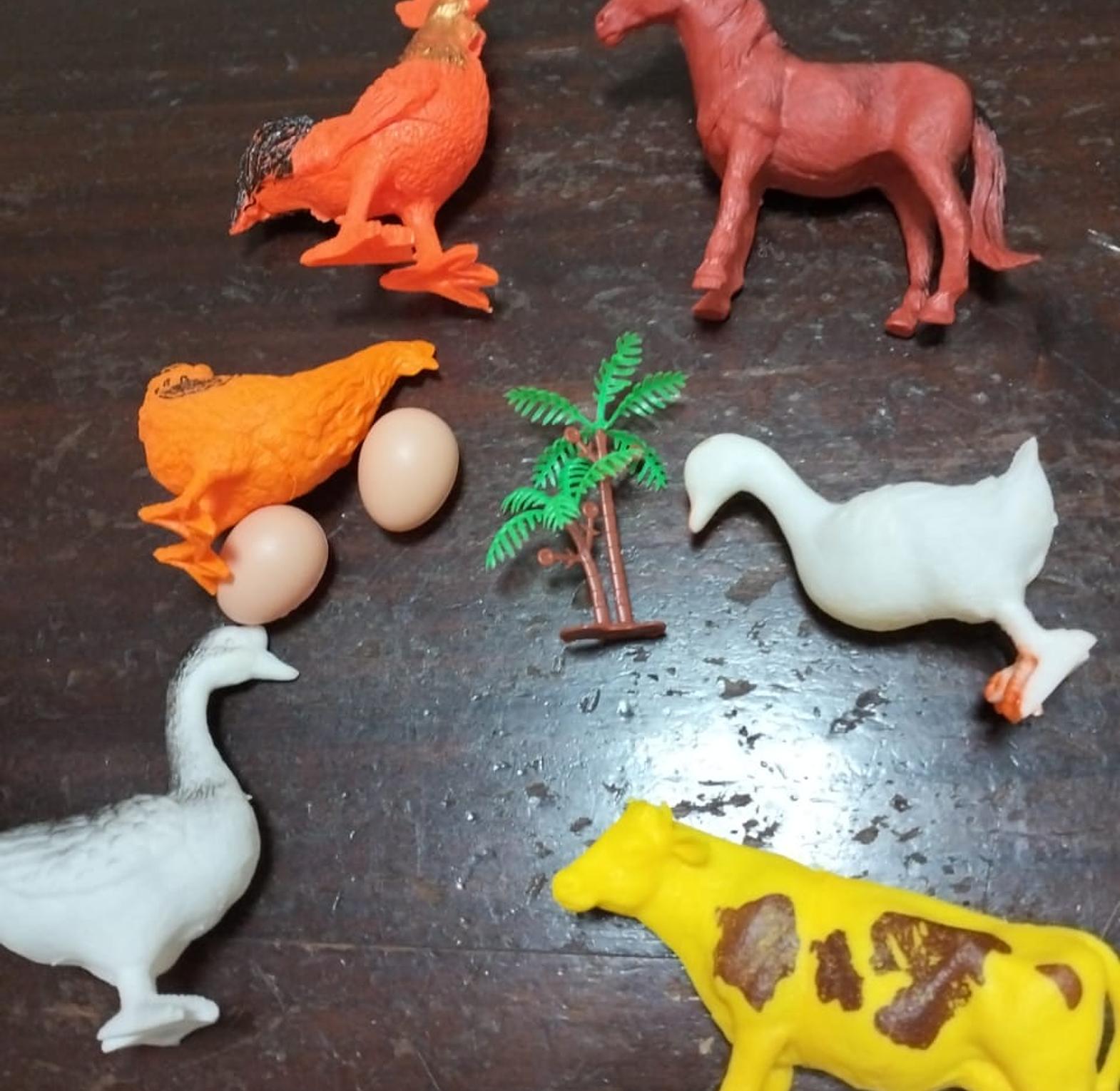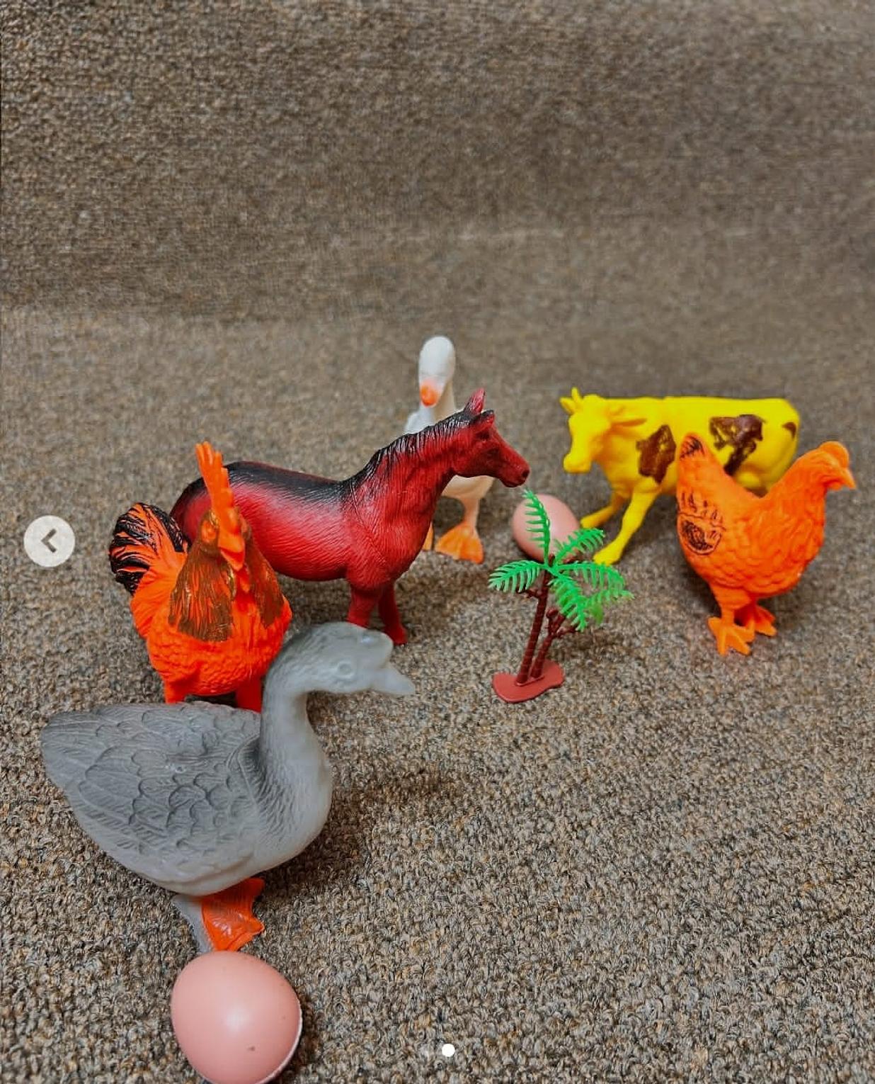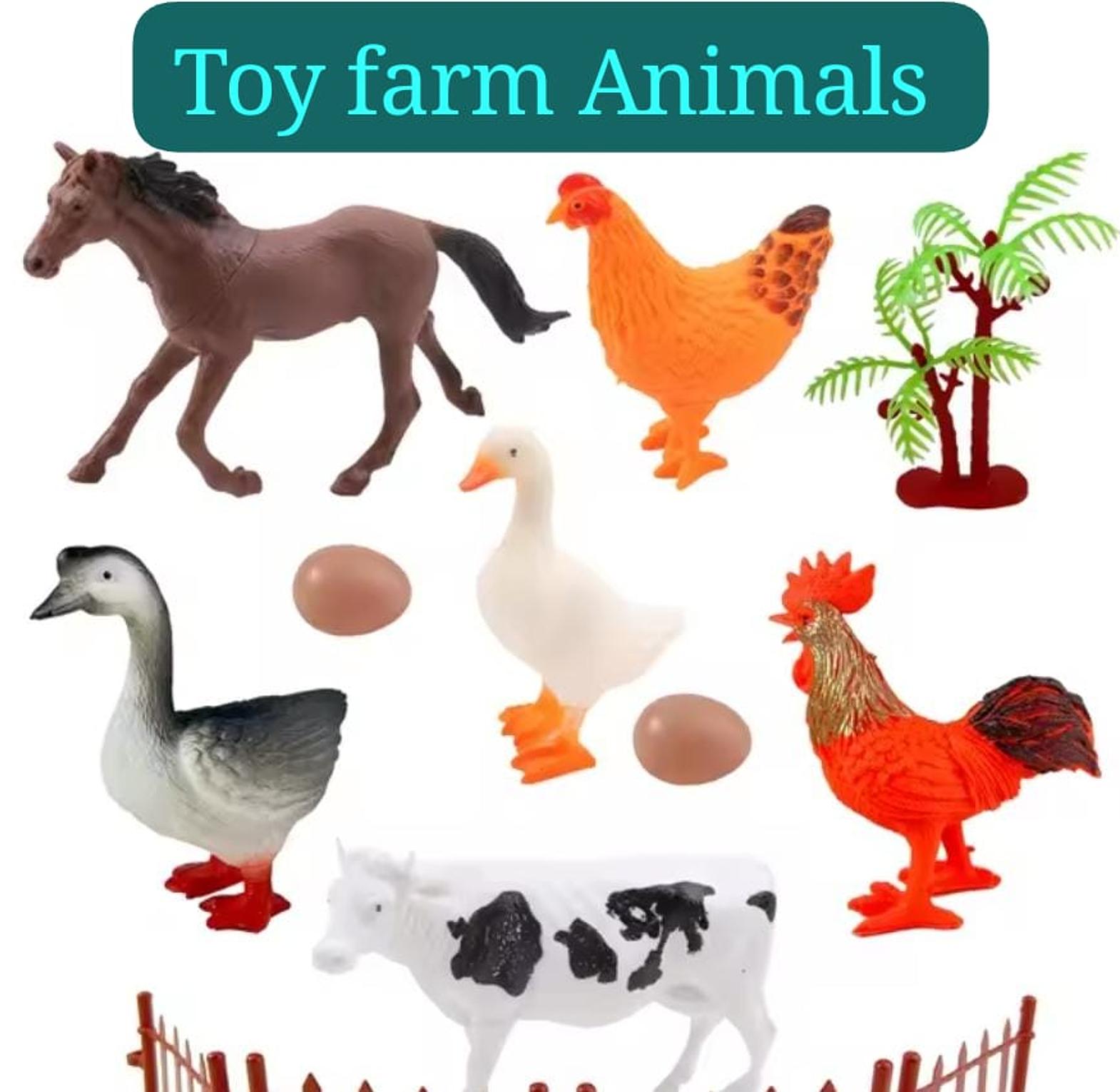 Toy farm animals set - miniature figures for kids, cake toppers, dioramas cbc learning farm animals adventure set of 6 animal toy figures | perfect for imaginative play and learning about farm animals | suitable for kids 3+ years bring the farm to life with this delightful set of toy farm animals! this collection includes a horse, cow, chicken, rooster, white goose, grey goose, two eggs, a small palm tree, and fencing pieces. perfect for imaginative play, educational purposes, cake toppers for farm-themed parties, or adding charming detail to dioramas and craft projects. ideal for kids and collectors toy farm animals, miniature animals, farm figures, plastic animals, kids toys, educational toys, cake toppers, farm party decorations, diorama supplies, craft supplies, horse toy, cow toy, chicken toy, rooster toy, goose toy, eggs.