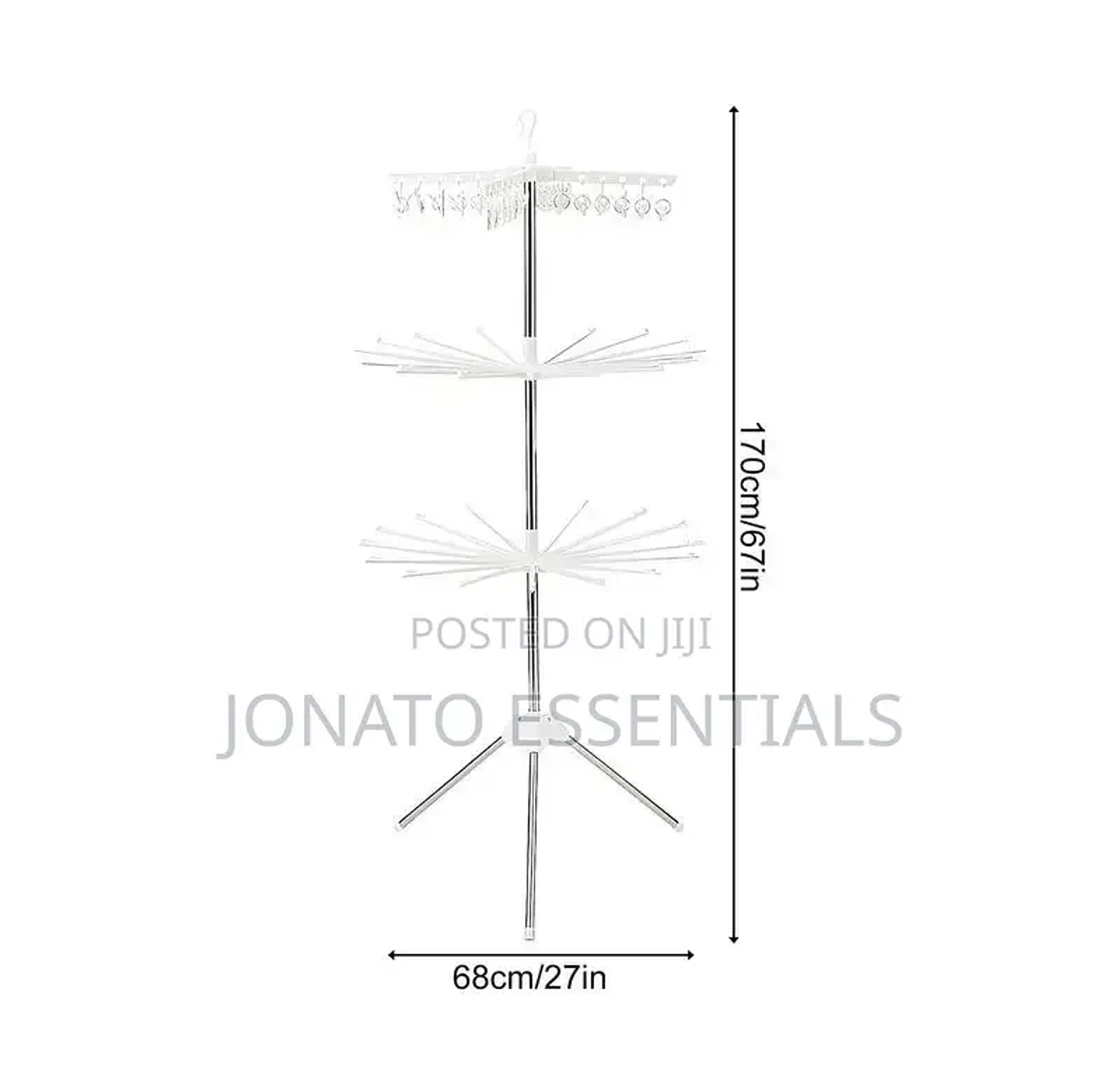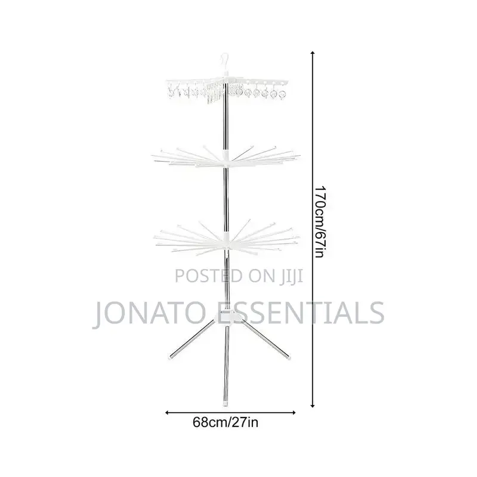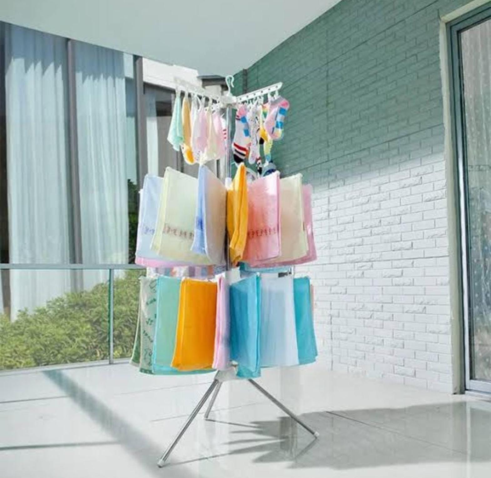 Tripod clothes drying rack 170cm high 3 layer metallic versatile space saving laundry dryer stand dry your clothes effortlessly with our super tough indoor clothes drying rack. it's designed for easy holding and putting of clothes while providing ample space for multiple towels. this foldable laundry rack for drying clothes is easy to install with all mounting accessories included. say goodbye to damp laundry forever. foldable drying rack with clips 360 rotatable tripod airer for clothes easy assembly steel rack stand for towels socks underwear.