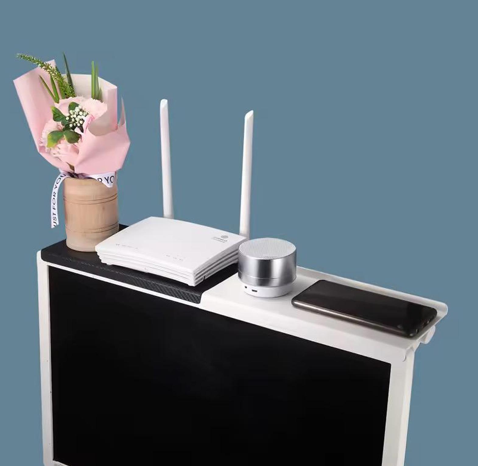 Tv screen top storage shelf, wifi router holder 1. shelf that can hold mobile phones, tvs, computers and small objects 2.black stylish appearance 3.the product is durable, stable and not easy to hurt people 4.suitable as a gift for lovers, family, friends 5.made of environmentally friendly materials to reduce pollution 6.the raised dot design increases friction and prevents items from slipping. tv screen top storage shelf adjustable computer monitor desktop screen top storage rack router shelf rack home organizer. rack tv monitor organizer screen top storage display multifunction bracket stand for office home modem router shelf rack holder.