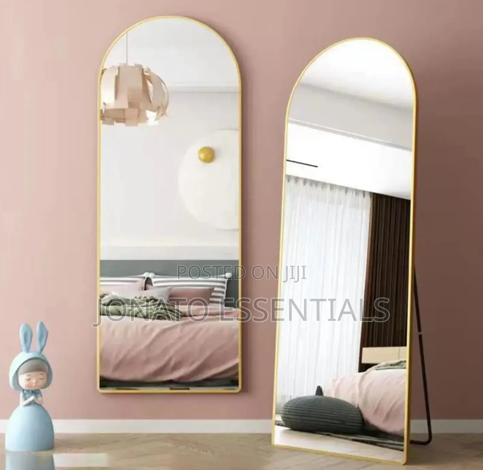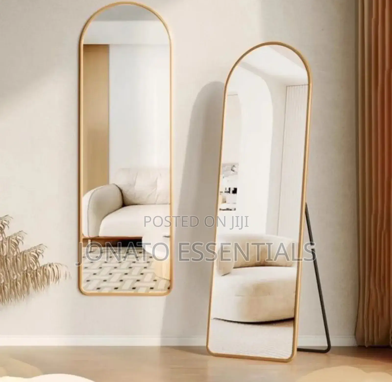 Unbreakable mirrors size 40cms by 150cms also available in: size 50cms by 180cms 9000 can be wall mounted or just left standing. can view your whole body in one strike. arched full length mirror free standing leaning mirror hanging mounted mirror aluminum frame modern simple home decor full-body.