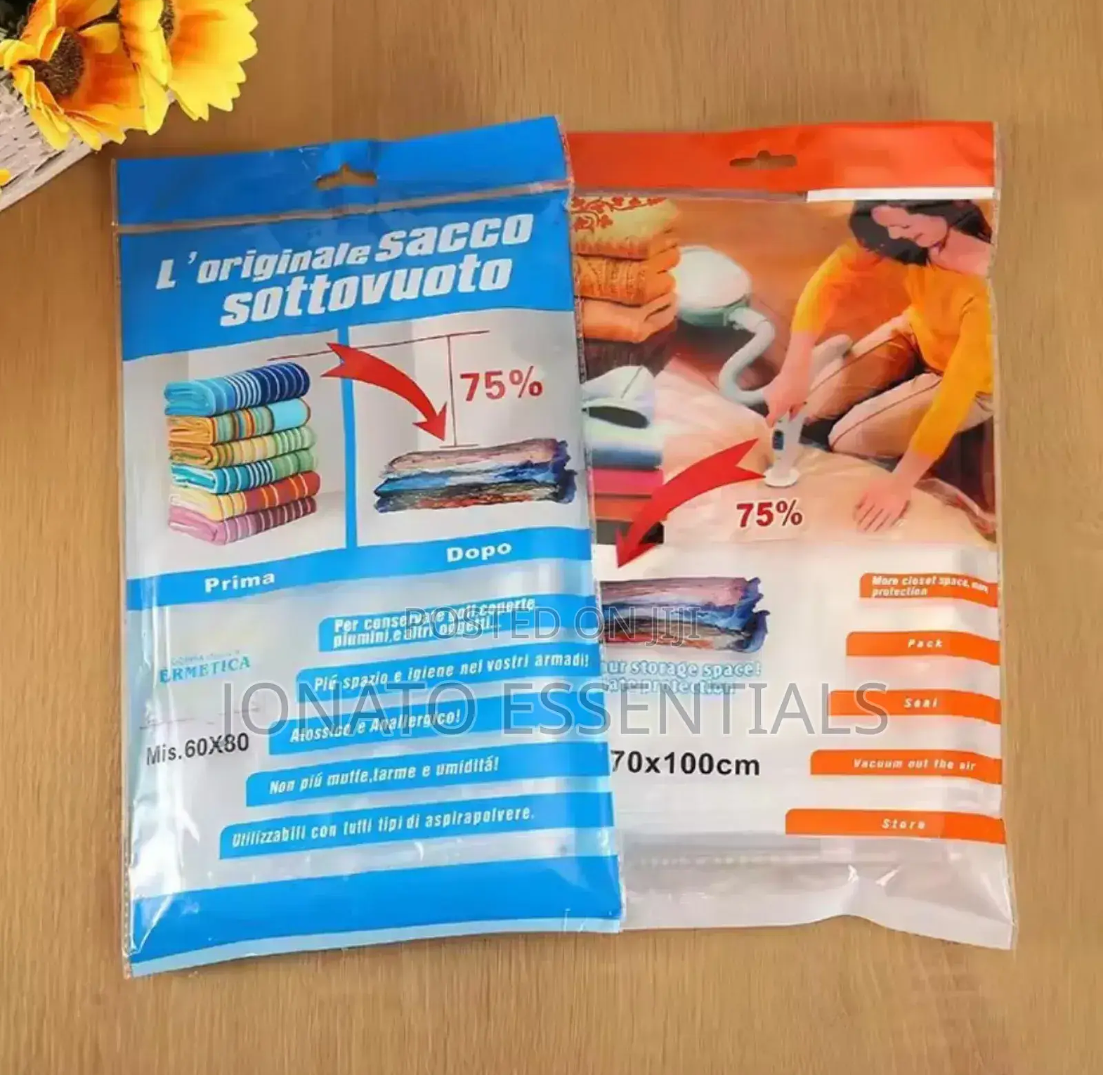 perfect for compressing and storing clothing, blankets, comforters, pillows. save up to 75% of space in your closets, wardrobes, and luggage. these airtight and waterproof bags protect your belongings from dust, moisture, mold, insects, and odors, keeping them fresh and organized for longer. ideal for home organization, seasonal storage, and travel.