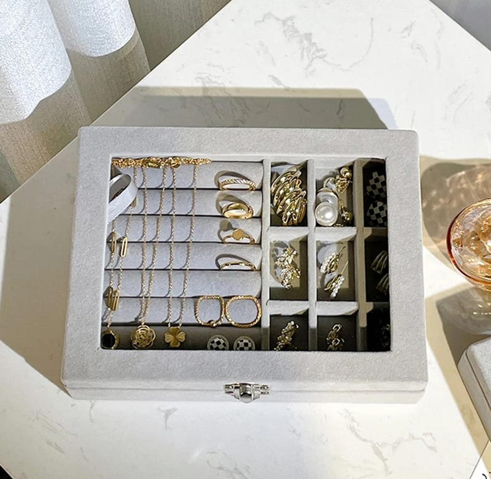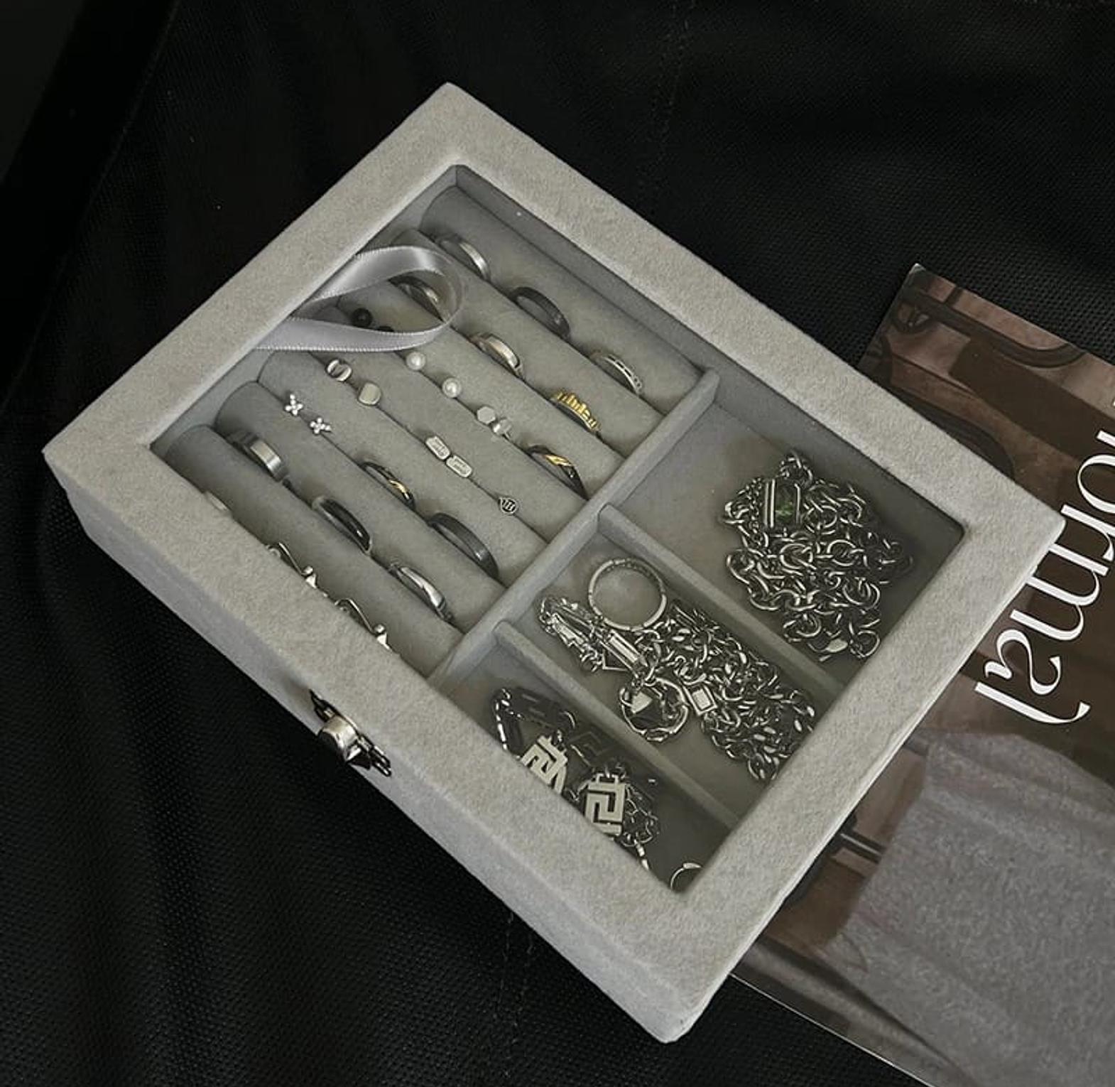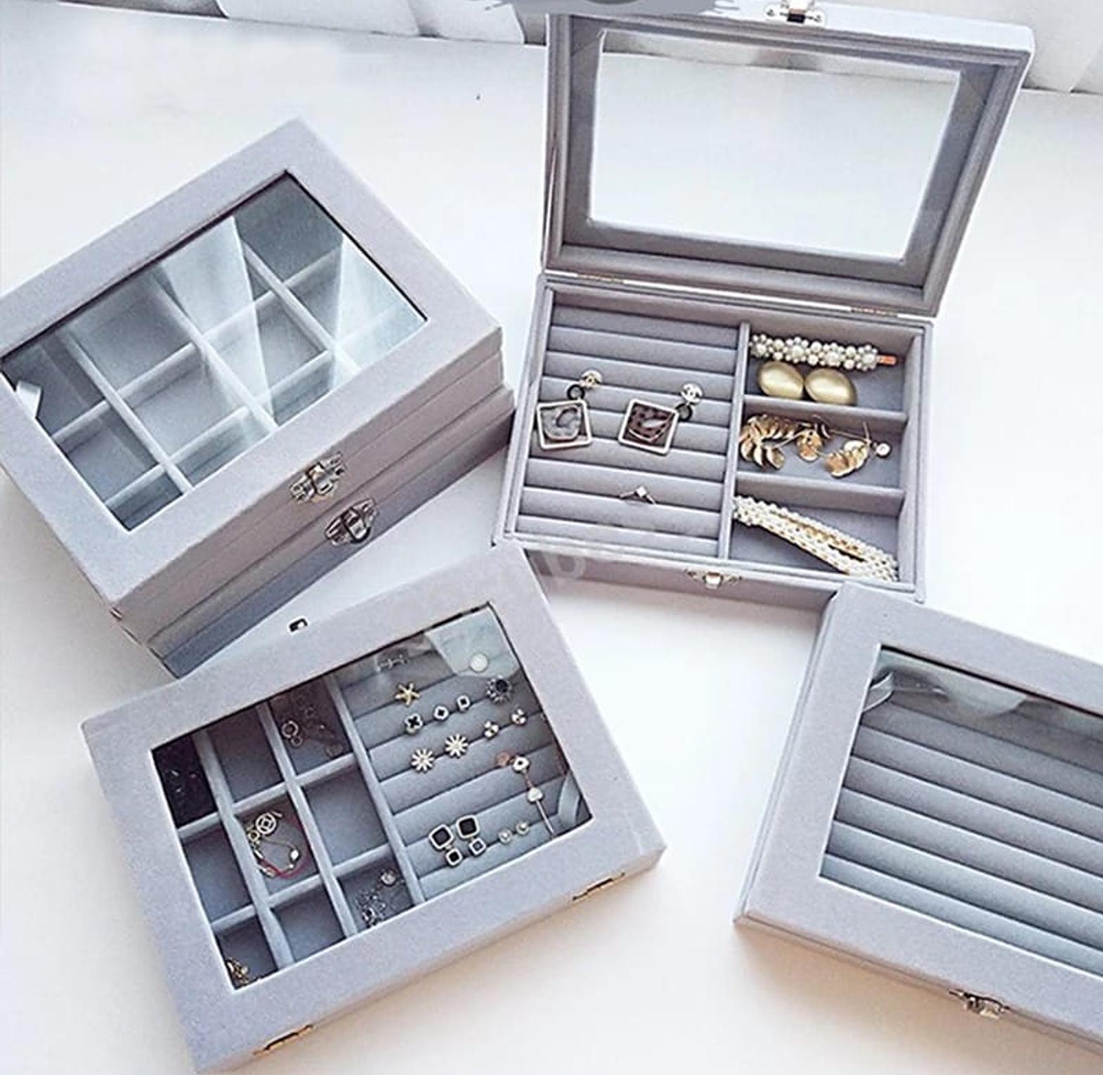 Elegant velvet ring display and jewelry organizer with clear lid jewelry storage box showcase and protect your precious rings and small jewelry with this sophisticated velvet display box. this versatile jewelry case is perfect for organizing rings, earrings, small necklaces, and other delicate items. its sleek design makes it a wonderful addition to any dresser, vanity, or retail counter. jewelry box, ring display case, velvet jewelry organizer, clear lid jewelry box, jewelry storage, ring organizer, earring holder, small jewelry case, display case, jewelry tray, velvet ring box, glass top jewelry box, jewelry gift, elegant jewelry box, retail display, jewelry storage solution, travel jewelry case (for similar smaller options), compact jewelry organizer. home jewelry display box with covered necklace ring jewellery organizer