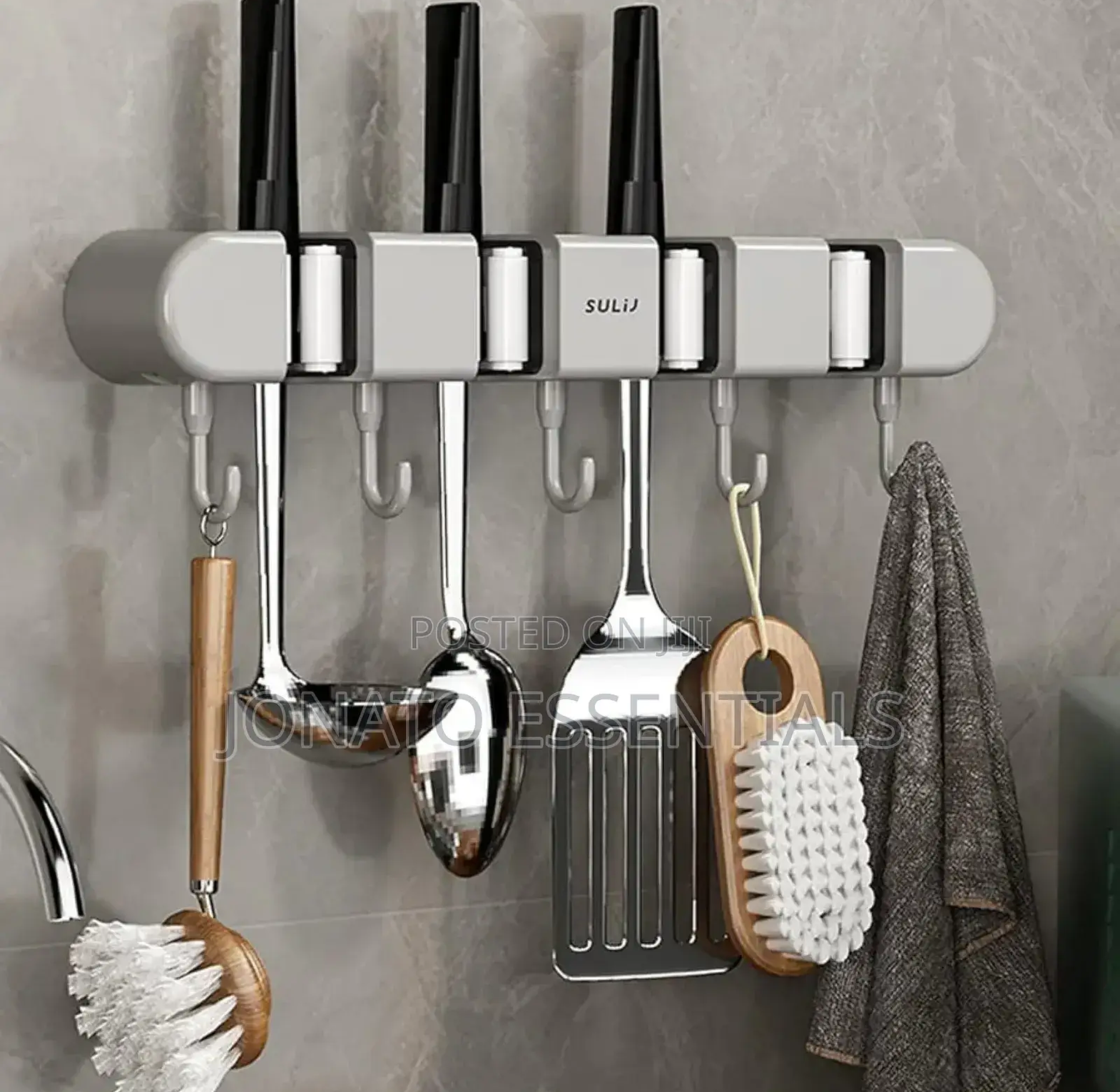 Wall mounted adhesive mop holder and organizer non slip mop hook / holder punching-free. shelf clamp for mops, duatoan, garden tools etc. strong seamless wall hanging rack. no drilling needed, simply the grippers on any smooth wall for hassle frees installation. create a neat and organized environment in your laundry room, garage, or storage area with the broom holder. easily store your brooms and keep them within reach whenever you need them. the strong adhesive ensures a reliable grip on various wall surfaces. punch-free mop holder wall mounted bathroom broom hanger brush self-slip broomstick hook storage rack home bathroom organizer.