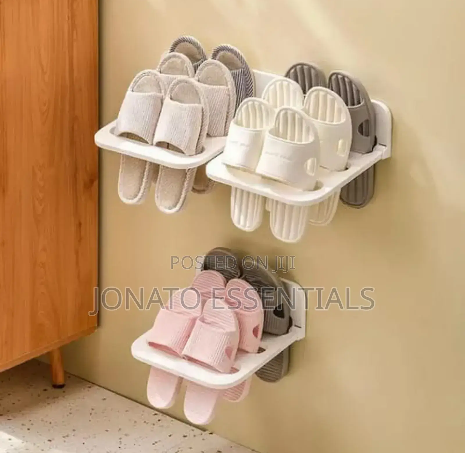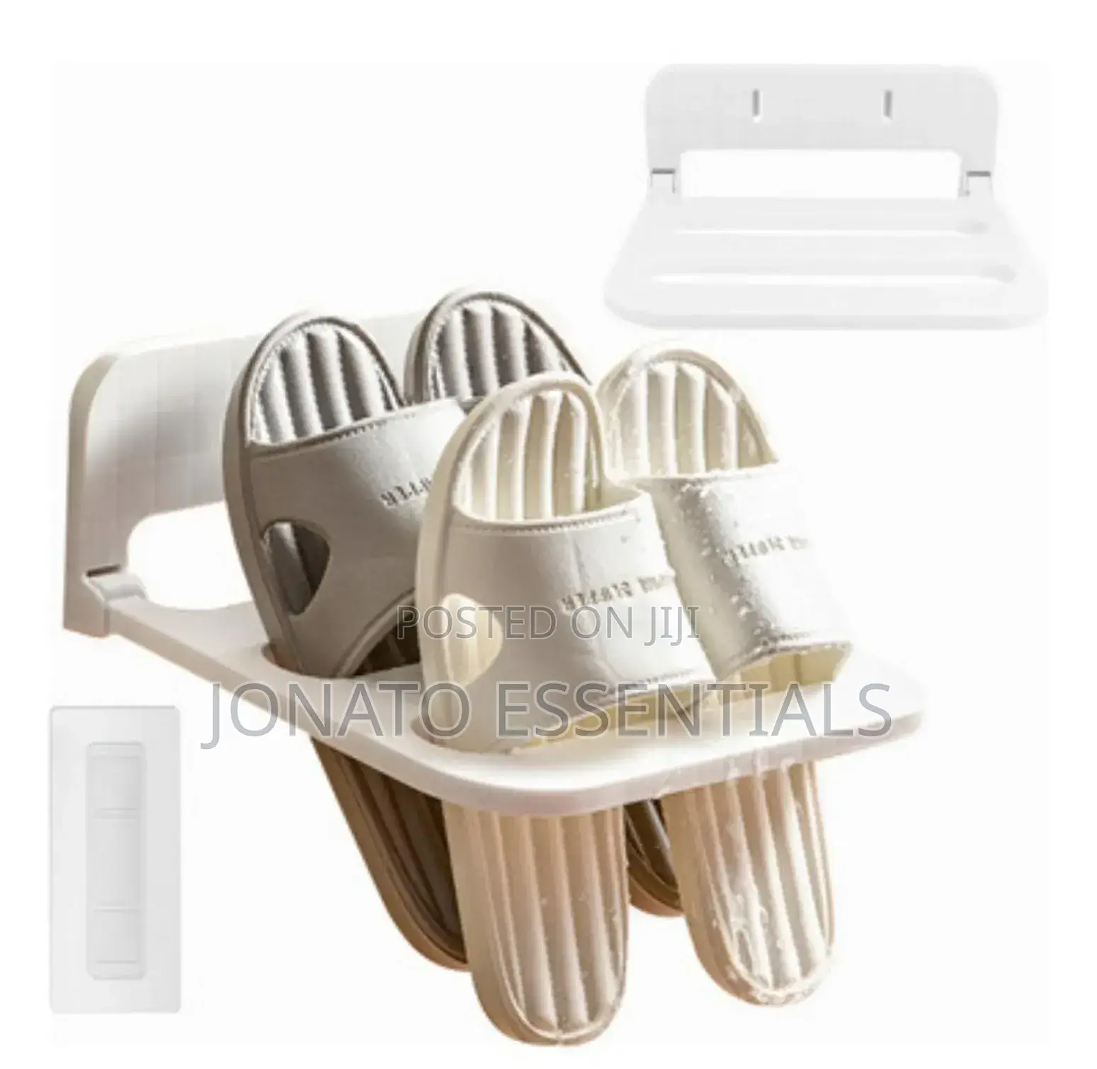 Wall-mounted folding shoe rack, bathroom slipper rack 2in1 adhesive wall mounted folding bathroom slippers and crocs storage rack easy installation: simply wipe the wall, stick the double sided tape, peel off the protective film from the traceless sticker, press it in clockwise to expel air. no drilling required. wall-mounted folding shoe rack, bathroom slipper rack, simple doorstep, beautiful indoor home storage artifact, wall hanging.