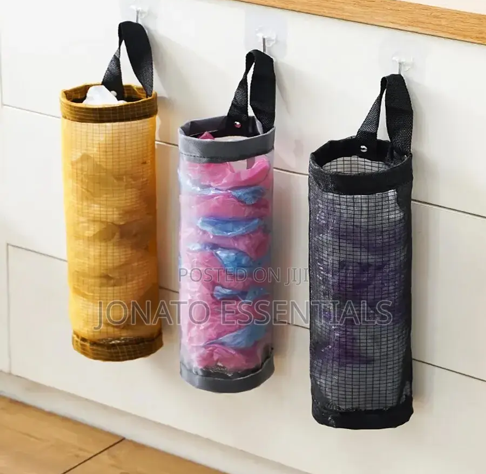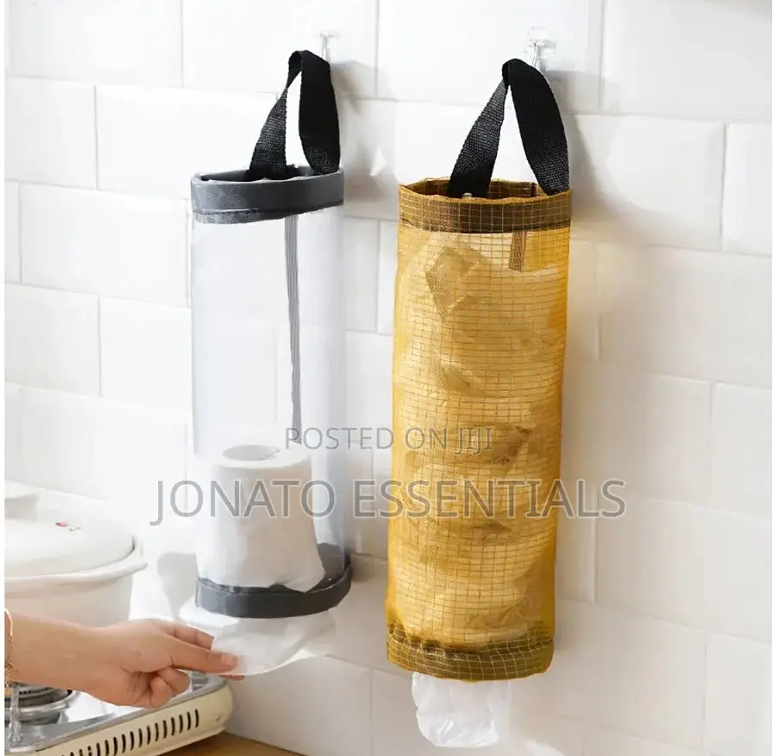 Wall-mounted garbage bag storage organizer trash hanging storage bags. polyester mesh cloth, small and convenient, bottom outlet design, easy to use, can store garbage bags, disposable shoe covers, etc. wall mounted design :its wall-mounted design saves space and allows for easy access, making it perfect for behind doors or on walls. wall mount plastic bag holder dispenser hanging storage trash garbage bag kitchen garbage organizer