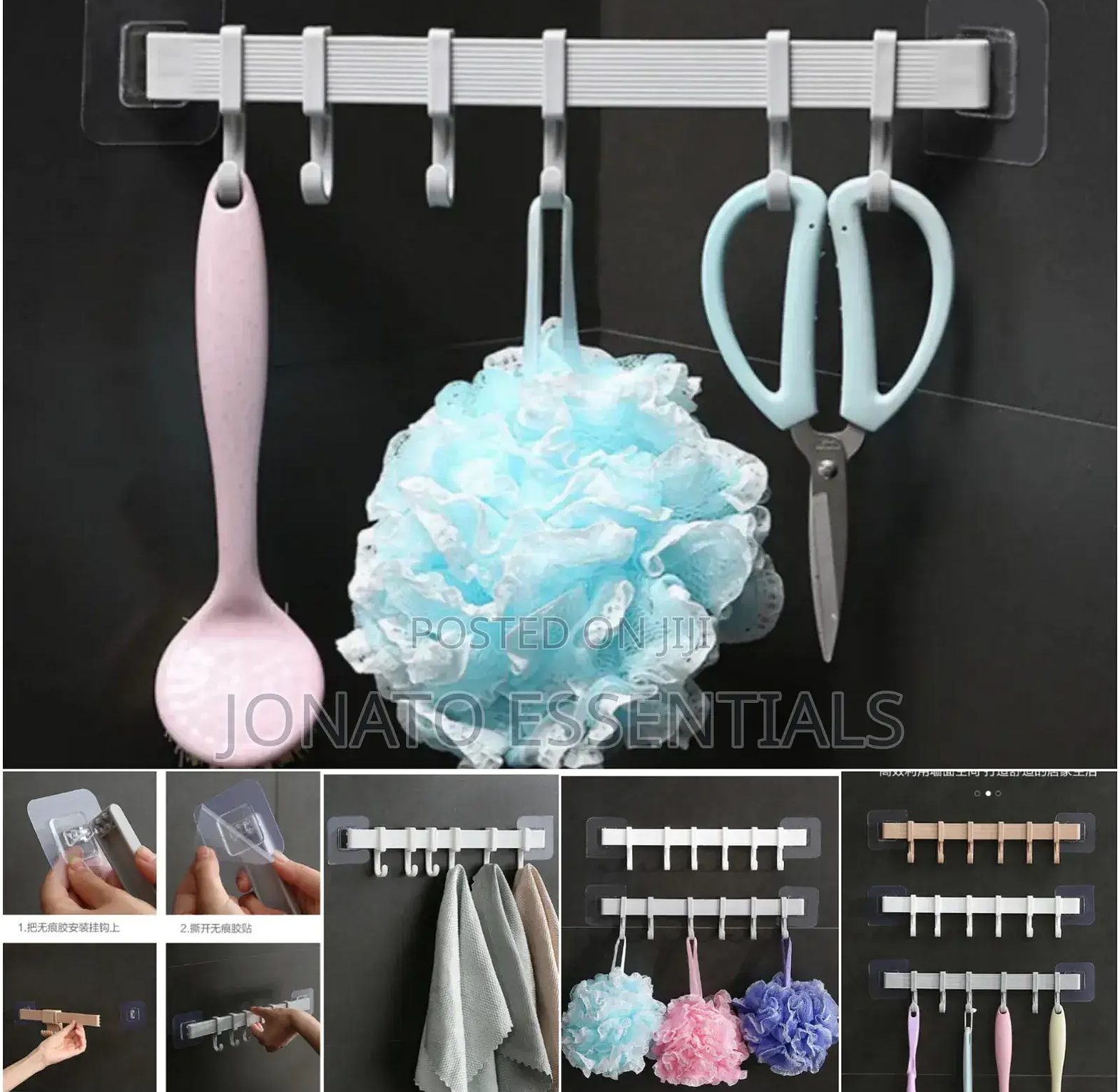 wall-mounted hook rack, adhesive hanger, rotating hooks, kitchen organizer, bathroom storage, space-saving hanger, wall-mounted storage, multipurpose rack, home organizer, waterproof hook strip, strong adhesive hooks.