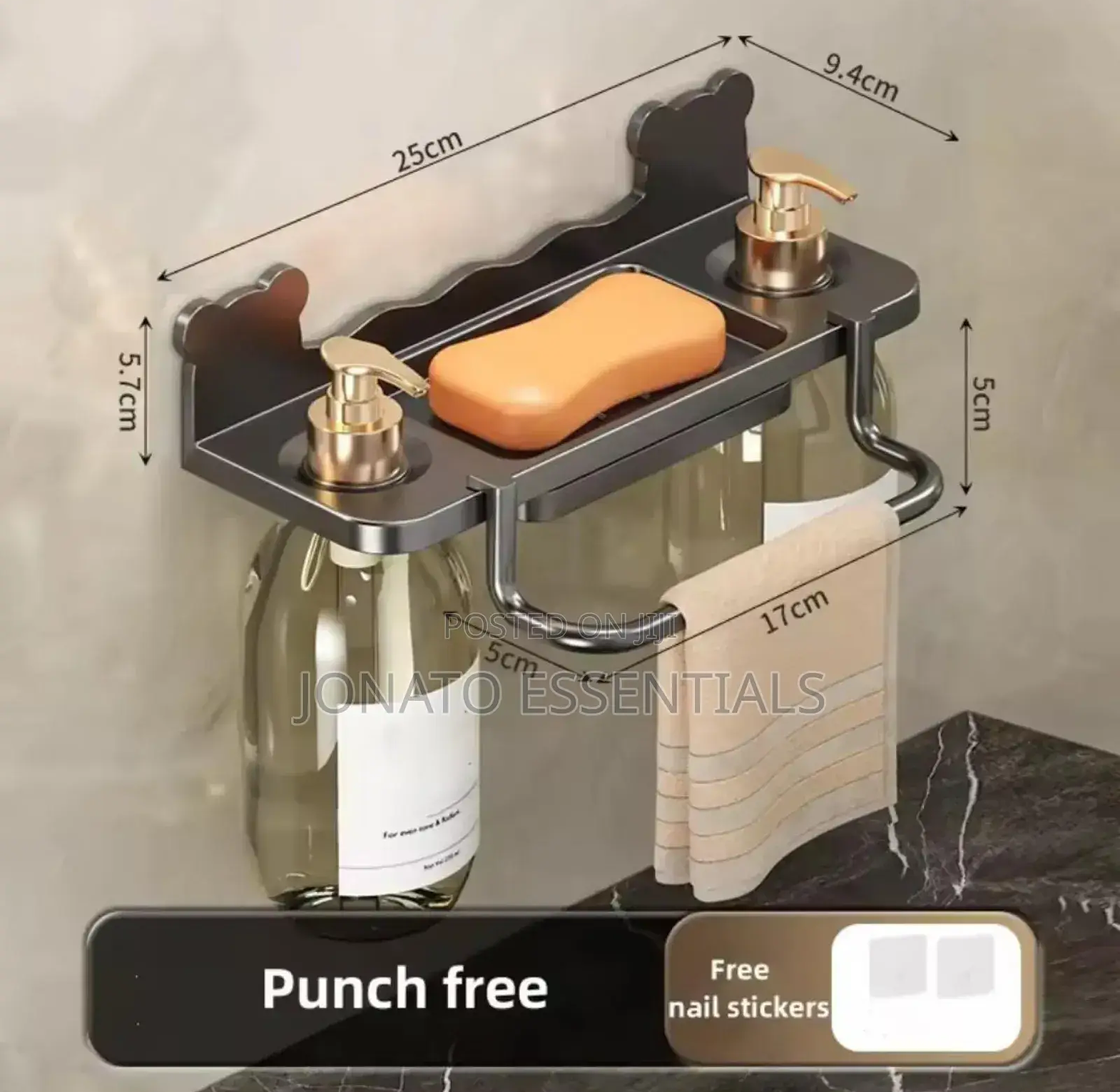 our shower shampoo holder shower gel bottle rack features a self-adhesive design, making installation a breeze. no need for drills or screws, simply peel off the backing and stick it to any smooth surface like tiles, glass, or metal.