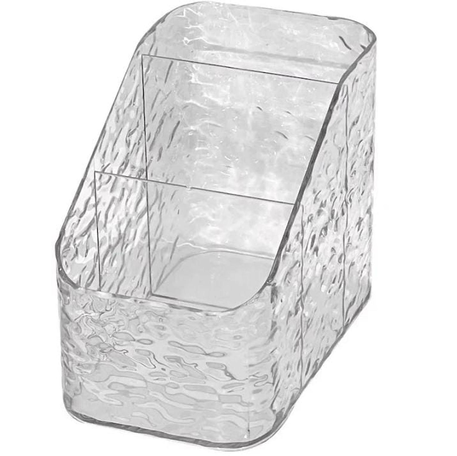 Water ripple makeup organizer, acrylic cosmetic storage box 3 grid acrylic organiser versatile use :this cosmetic storage box is not just for skin care products. it can also be used for lipstick storage, making it a versatile addition to your dormitory or desktop. large capacity :with its large capacity, this box can accommodate a variety of items, from skin care products to lipsticks, making it an ideal choice for organizing your personal care items. space-saving :its compact design makes it an efficient space-saver, perfect for small areas such as dormitories or desktops. easy to clean :this storage box is easy to clean, making it convenient for regular maintenance and ensuring the longevity of the product. water ripple shape makeup organizer premium acrylic cosmetic storage box makeup box make up storage box jewelry organizer boxes.