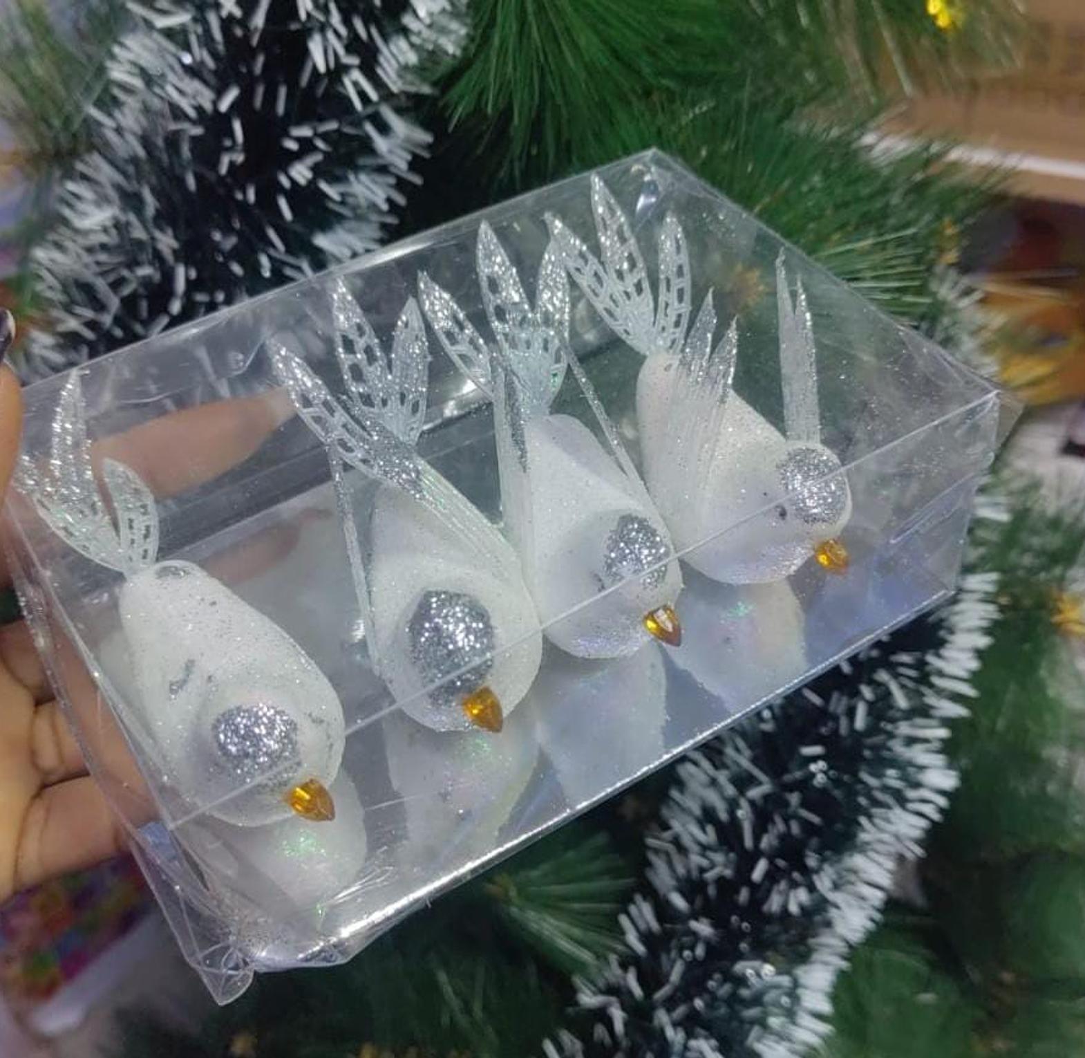 Christmas ornaments Kenya, white bird decorations, glitter festive decor, holiday tree ornaments, affordable Christmas birds, sparkling bird set, Kenyan holiday crafts
