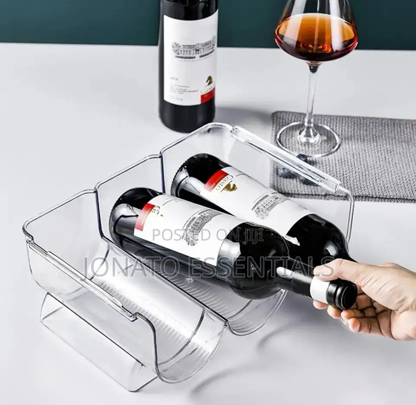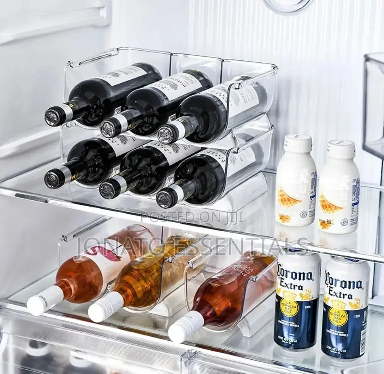designed to fit most pantries and refrigerators to hold multiple sizes of water bottles, bottled beverages, energy drinks, containers and more. it can also be used as a wine rack in kitchens and basements.