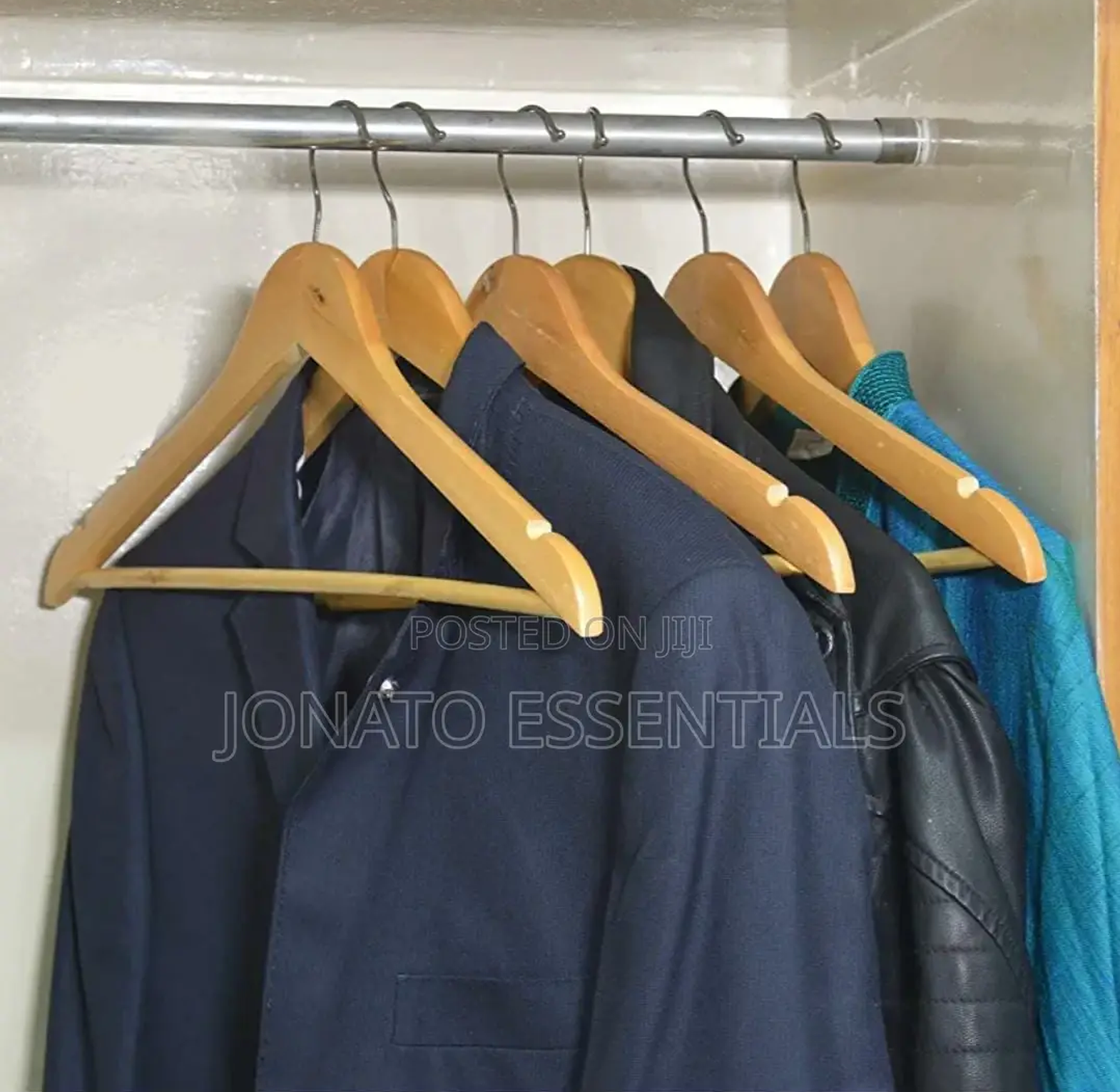Wooden clothes hanger made of natural wood material, this hanger is not only sturdy and durable but also provides strong support, ensuring that even heavy clothes won't be damaged. the smooth exterior coating adds an extra layer of protection, preventing any harm to your garments. coat hanger non-slip rack sturdy non-slip wide shoulder hangers neat wrinkle-free clothes.