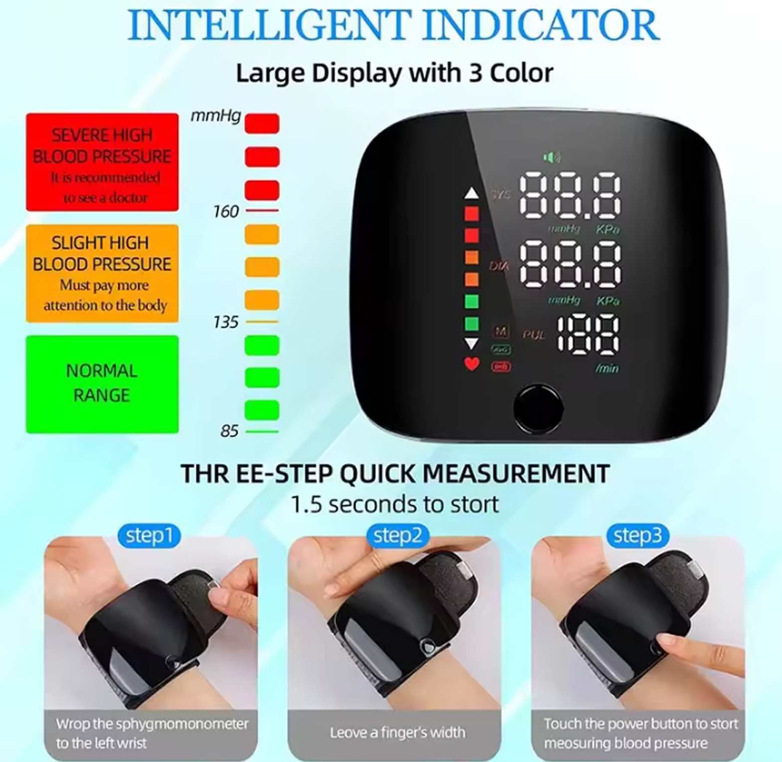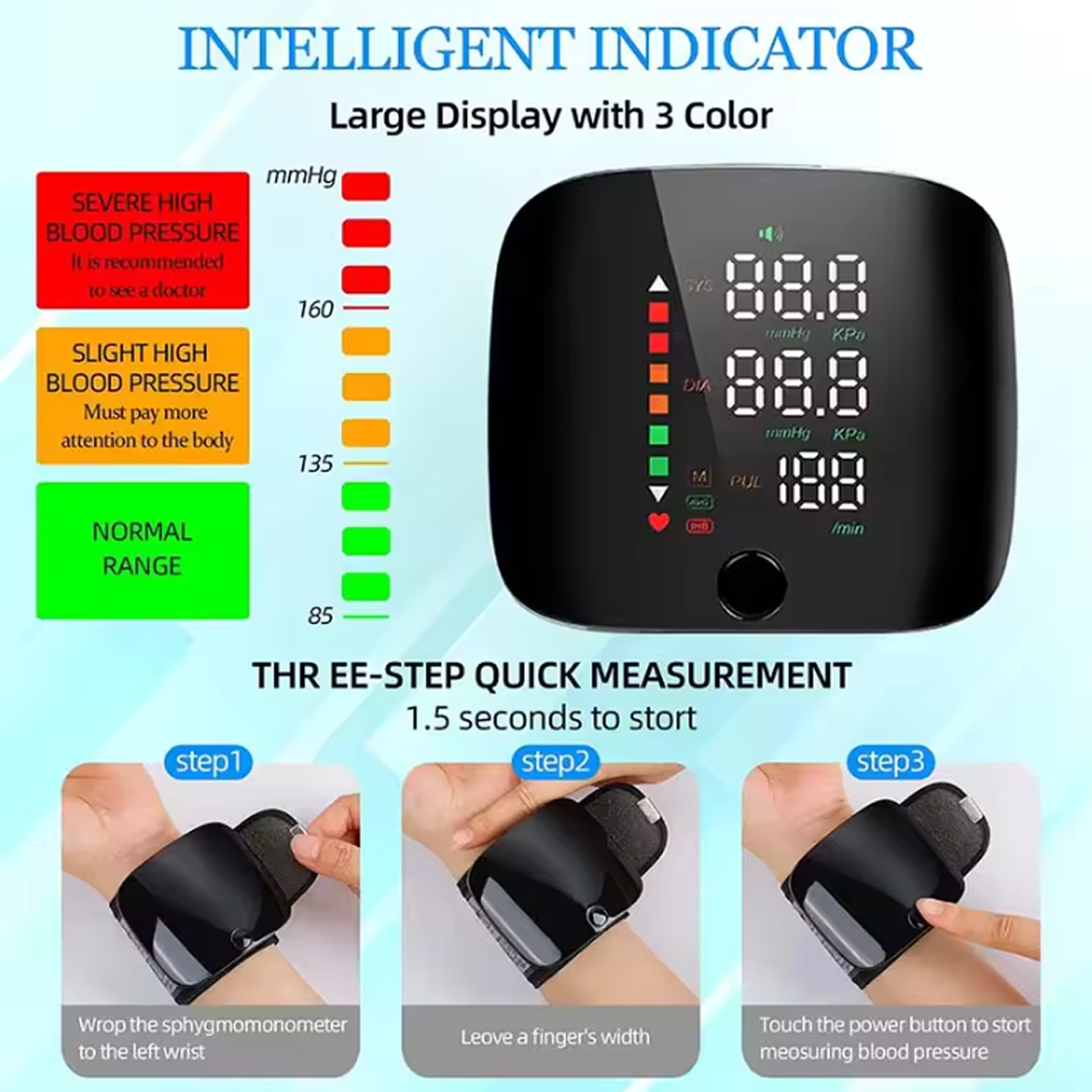 portable blood pressure monitor, wrist blood pressure monitor, digital blood pressure machine, home use blood pressure monitor, accurate BP monitor, wrist BP monitor, blood pressure measurement, health monitoring device, adjustable cuff blood pressure monitor, easy to read blood pressure monitor, on-the-go blood pressure monitor, cardiovascular health, systolic blood pressure, diastolic blood pressure, digital display blood pressure monitor.