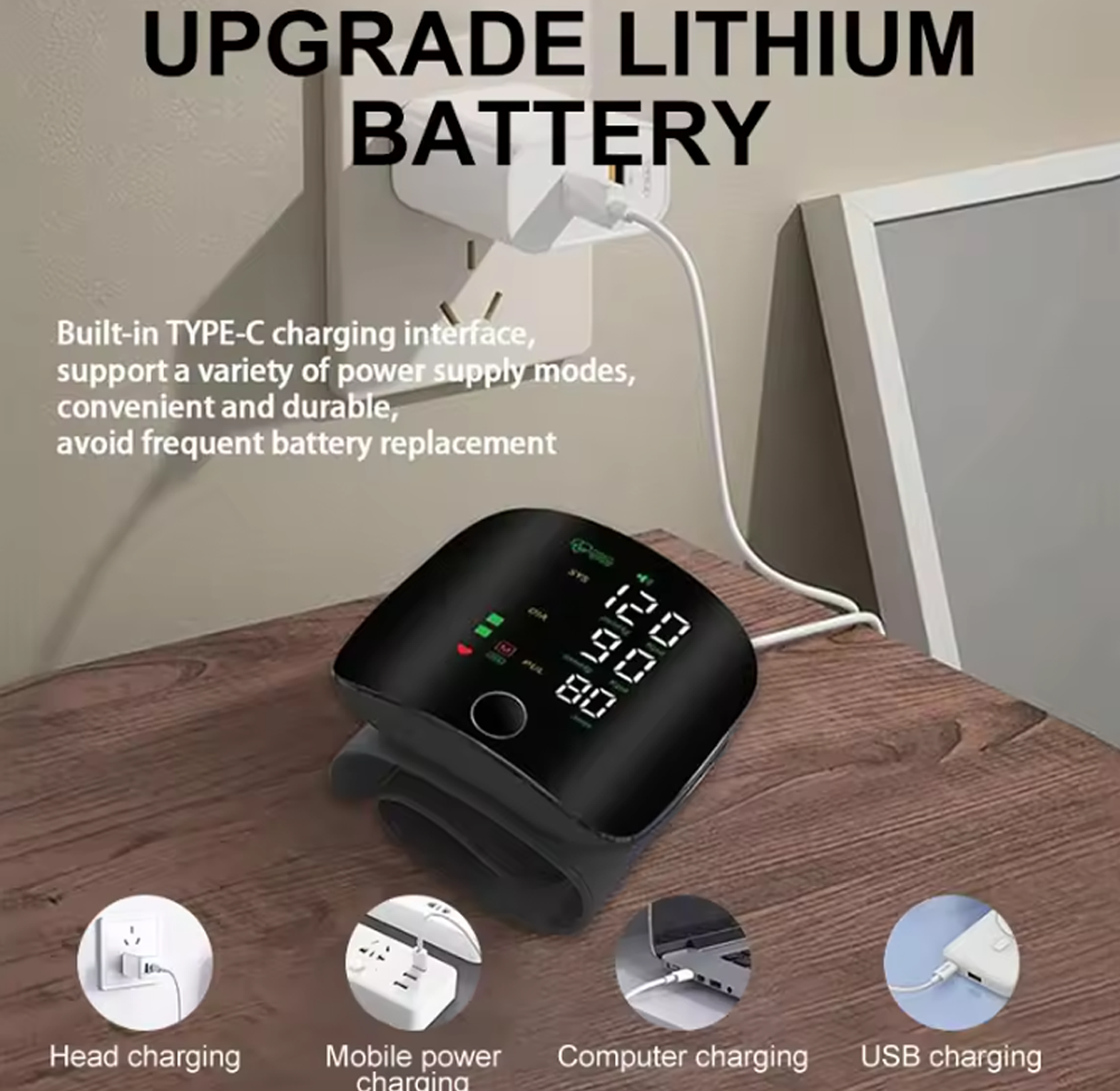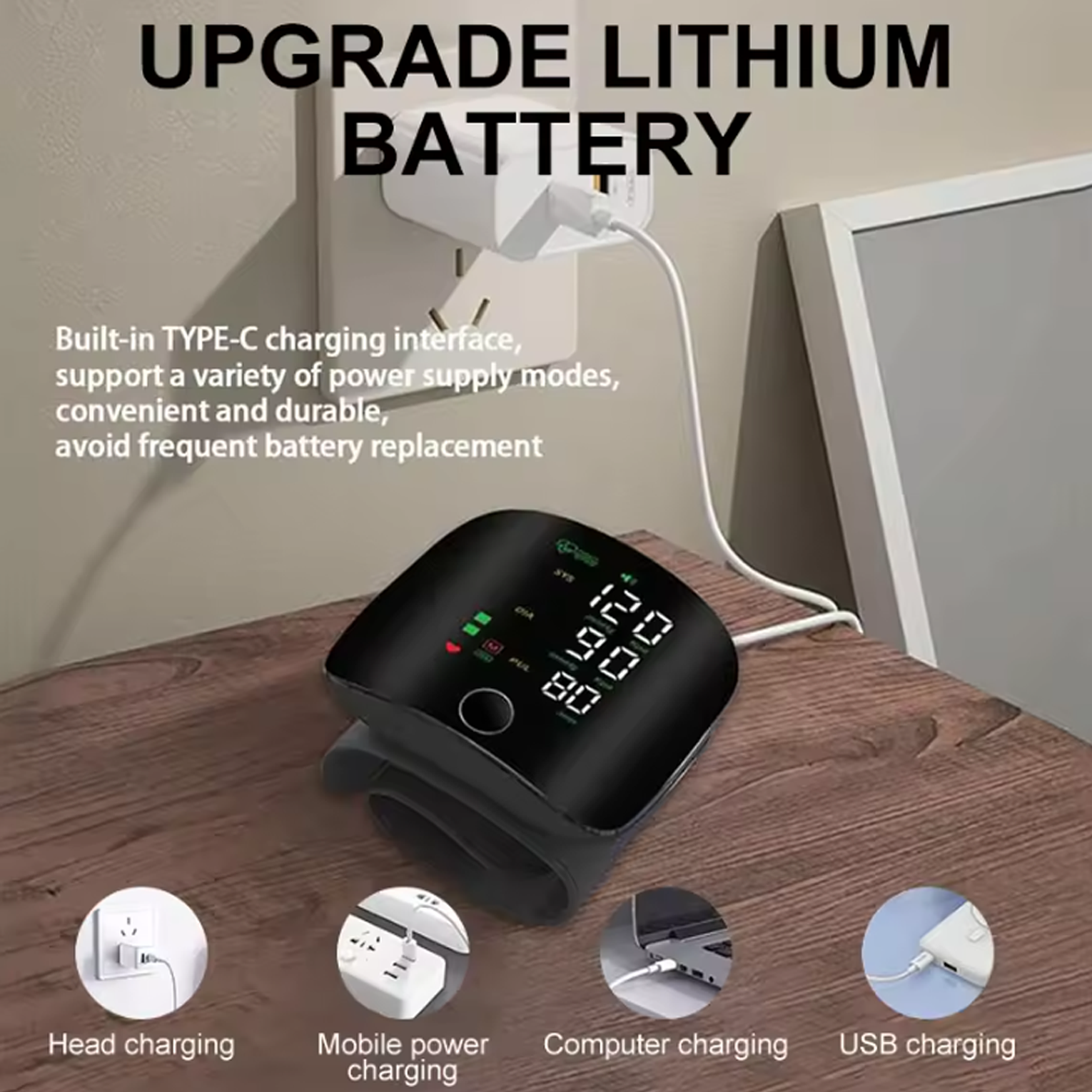 Wrist electronic Rechargeable sphygmomanometer blood pressure monitoring kit