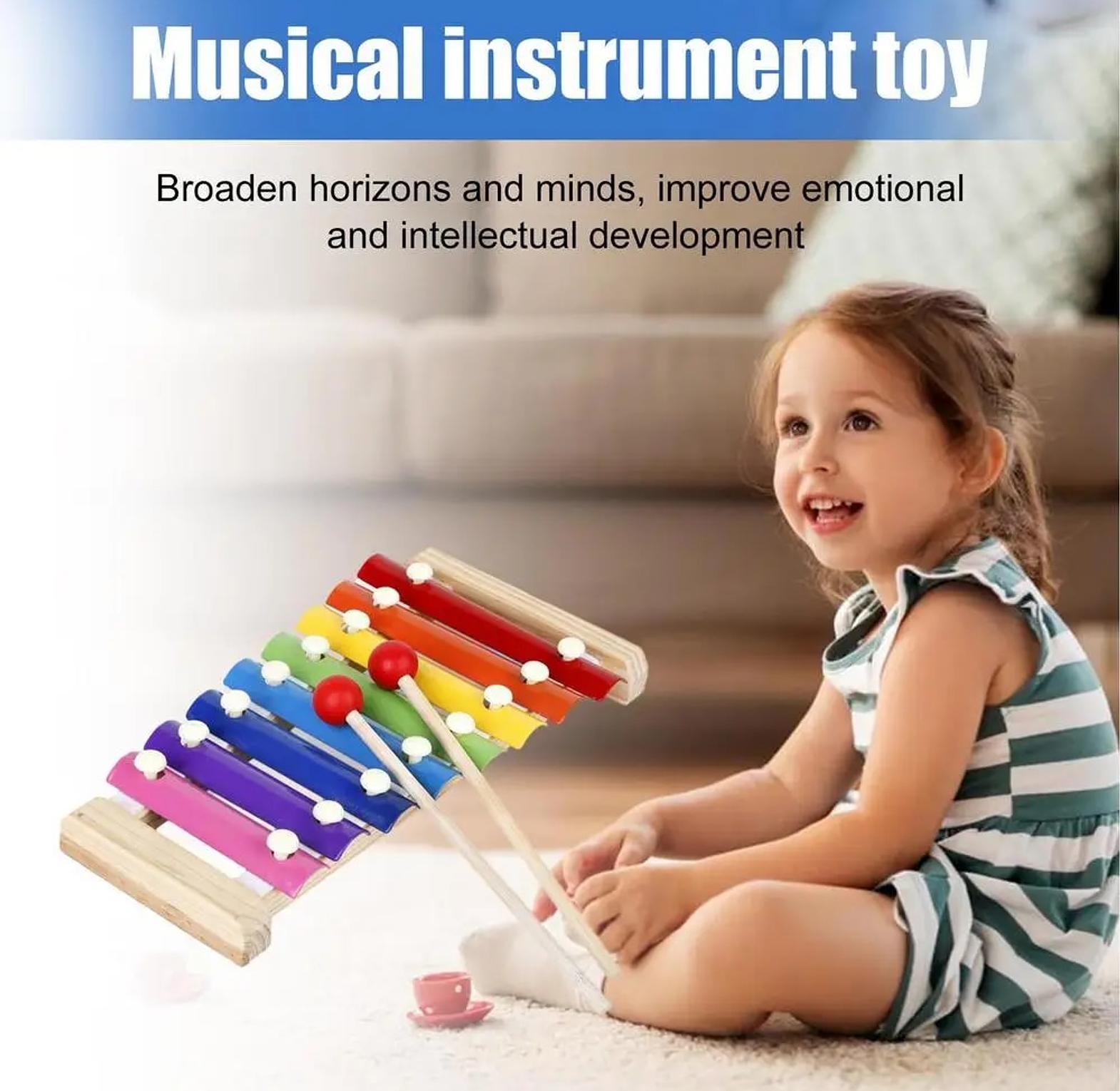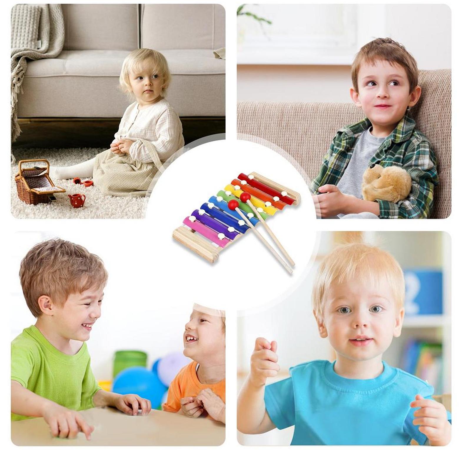 Xylophone, musical instrument toy 8 note xylophone: the professional 8 note xylophone is a musical enlightenment toy for children, help children learn scales and bringing an interesting experience. xylophone for kids has a full timbre and crisp sound, which is very suitable for adults or kids who are just starting to learn the carillon. with mallets: the 8 scales xylophone comes with 2 mallets, making it easy to play and carry. material: hand percussion xylophone glockenspiel is made of wooden material and aluminum plate, with smooth surface, light weight, no burrs and durable. gift: suitable for beginners and children as a teaching instrument, the xylophone glockenspiel is a perfect early education gift for your children. 8 scales xylophone educational percussion xylophone learning professional kids wood xylophone for band birthday gift.