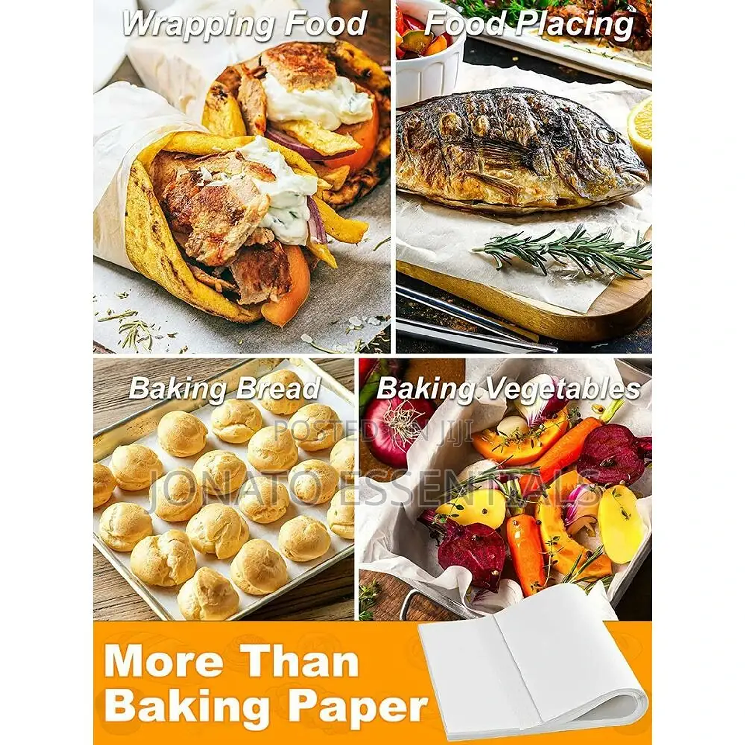 10 pcs parchment paper sheets, baking sheet size: 76 x 50 cm used for baking, packaging, freezing, cooking and grilling. baking sheet, pre-cut, non-stick silicone oil paper, 100% wood pulp and food grade coating, totally fluorescent free and non-toxic, temperature resistance is from -68 to 450°f for baking, packaging, freezing, cooking and grilling.