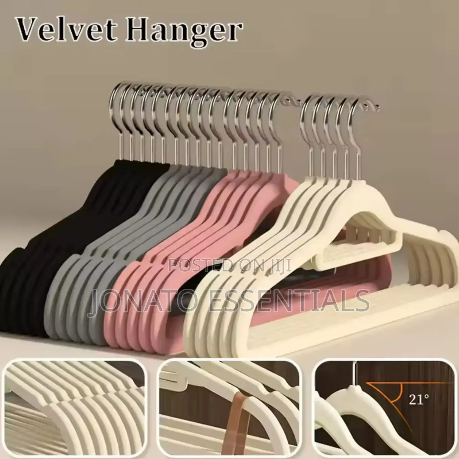 10 piece velvet cloth hangers velvet hangers 360degrees rotatable pack of 10 the hanger is made of tpe anti-slip layer and galvanized anti-rust layer. compared with ordinary hangers, the wavy design can hang all kinds of clothes. when drying clothes, you don't have to worry about the clothes slipping off, and it can also prevent clothes from leaving creases. feature: 1. it can be used to hang suspenders/underwear/coats/dresses, etc. 3. very useful for keeping your wardrobe clean and tidy. 10pcs velvet hangers non-slip dressing storage suit shirt camisole closet organizer save space prevents shoulder bulging.