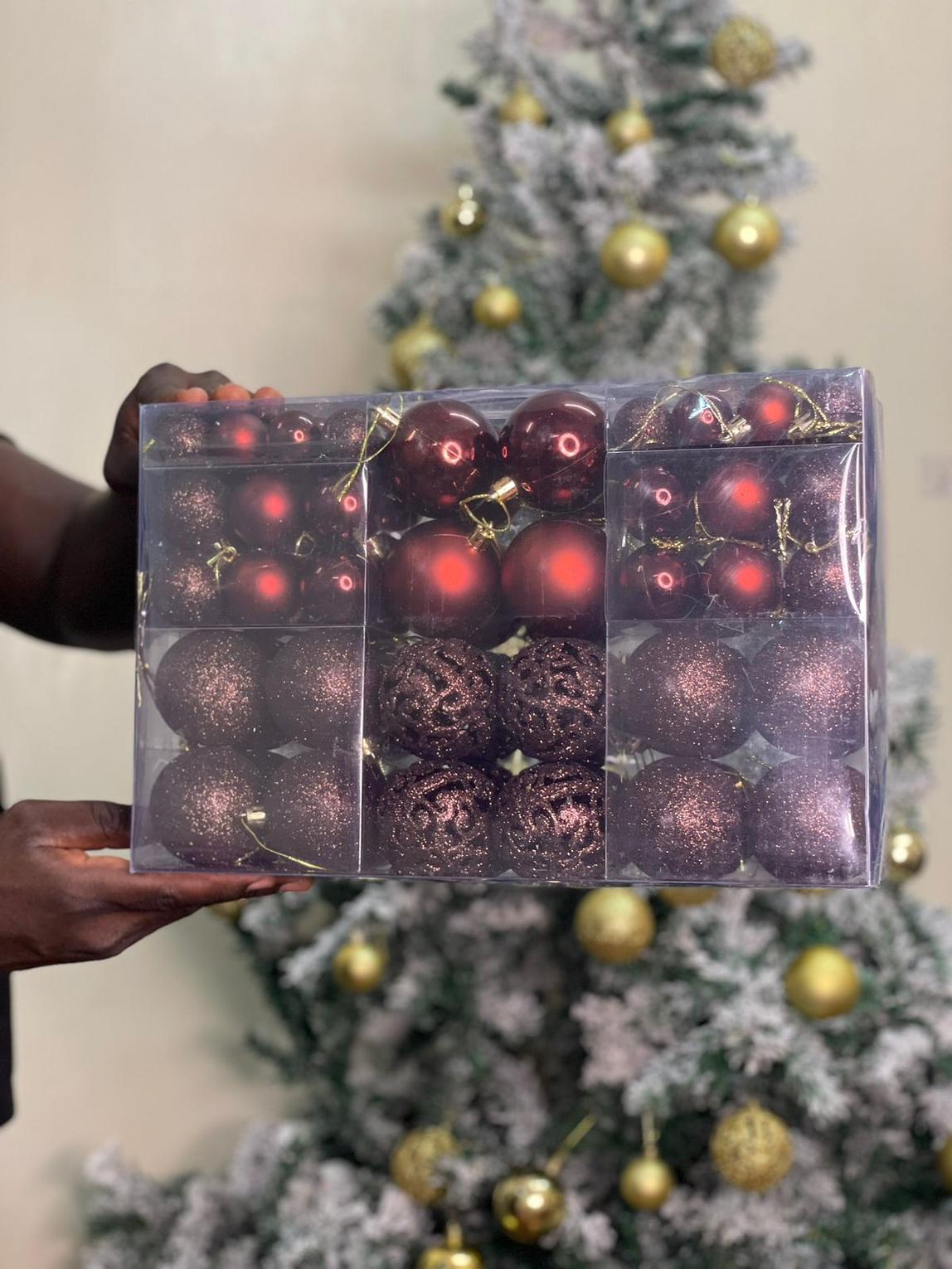 Elevate your holiday decor with this spectacular 100 piece premium Christmas ball set. Featuring a blend of glossy, glitter, and matte shades of deep red and burgundy, this collection offers an instant, coordinated look for your Christmas tree or venue. The assorted sizes and textures add depth and luxury. Ideal for homes, hotels, or corporate offices needing quality festive decorations in Kenya. Buy this complete Christmas decor set today and save on bulk purchase.