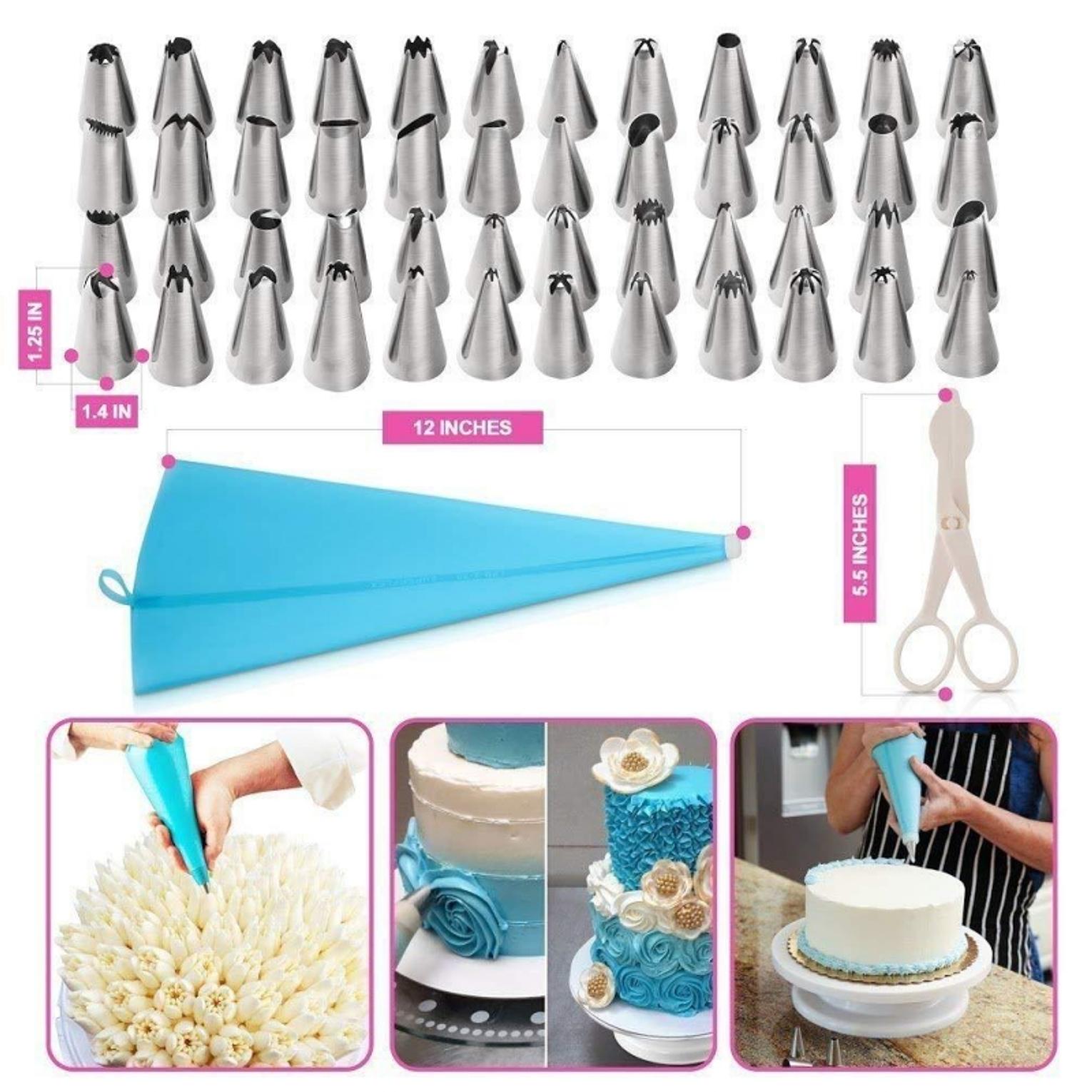 106 piece cake decorating set, cake baking tools essential cake decorating supplies kit: this baking supplies has everything you need to create beautiful cakes, no need to buy extra products — all you need is the frosting, the cake, and this cake decorating kit! 360° spinning cake turntable: making it easy to achieve stunningly consistent patterns and gorgeous designs. with 360o clockwise and counterclockwise spinning, you can decorate cakes like the pros. straight and angled frosting spatulas: these high-quality stainless steel frosting spatulas make it easy to even out frosting and work on layered cakes. you can create even crumb layers and perfect surfaces. cake decorating tip sets 106pcs pastry bag confectionery accessories nozzle stainless cream cake baking tools.