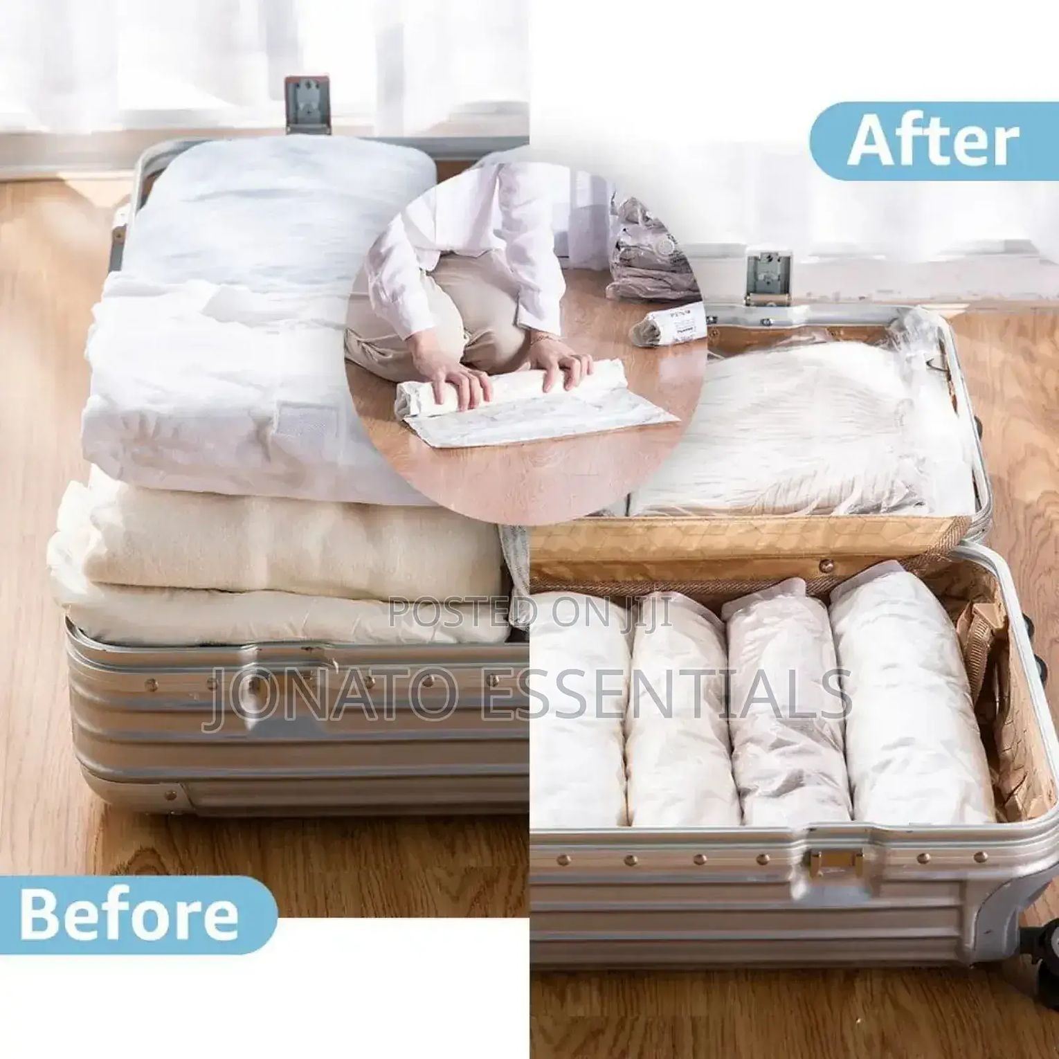 space saving: the rolling and pushing out air of the compression bag can reduce item size by up to 75%, leaving extra space in your suitcase and wardrobe.