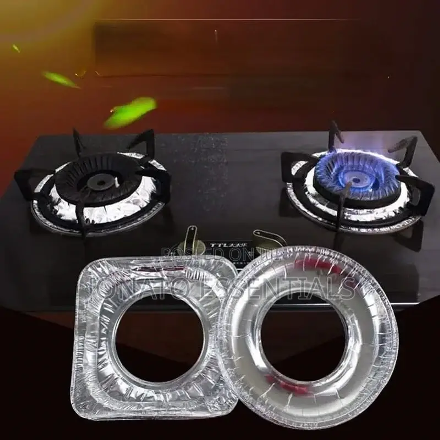 10pcs aluminium gas burner liners round shape diameter 23cm square shape 23*23cm. our gas burner covers are thicker than others on the market, the non-toxic aluminium we use is heat resistant and safe in your home and around foods. our square gas stove liners were designed to fit all stove tops, if needed, you can simply cut to size using scissors. 10pcs thicken aluminium stove protector cover gas stove burner liner stovetop cleaning pad mat kitchen accessories disposable.