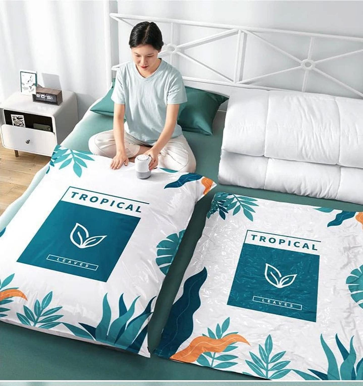 10pcs set vacuum compression storage bags (with electric pump) material: pa+pe material thickness: single layer 9 wire function: save space, moisture and dust, insect and moth comes with: 1 electric rechargeable pump extra large 100x90cm can hold about 11 kg quilt - 3pcs medium 80x60cm can be loaded with thin quilts or coat-3pcs small 70x50cm can hold thin clothing - 3pcs vacuum storage bags for clothes blankets comforters sweaters pillows home compression seal bags space saver bags