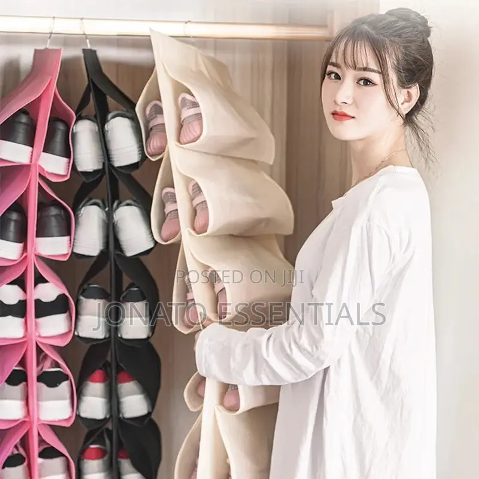 12 Grid Hanging Shoe Storage Bag, Closet Organizer