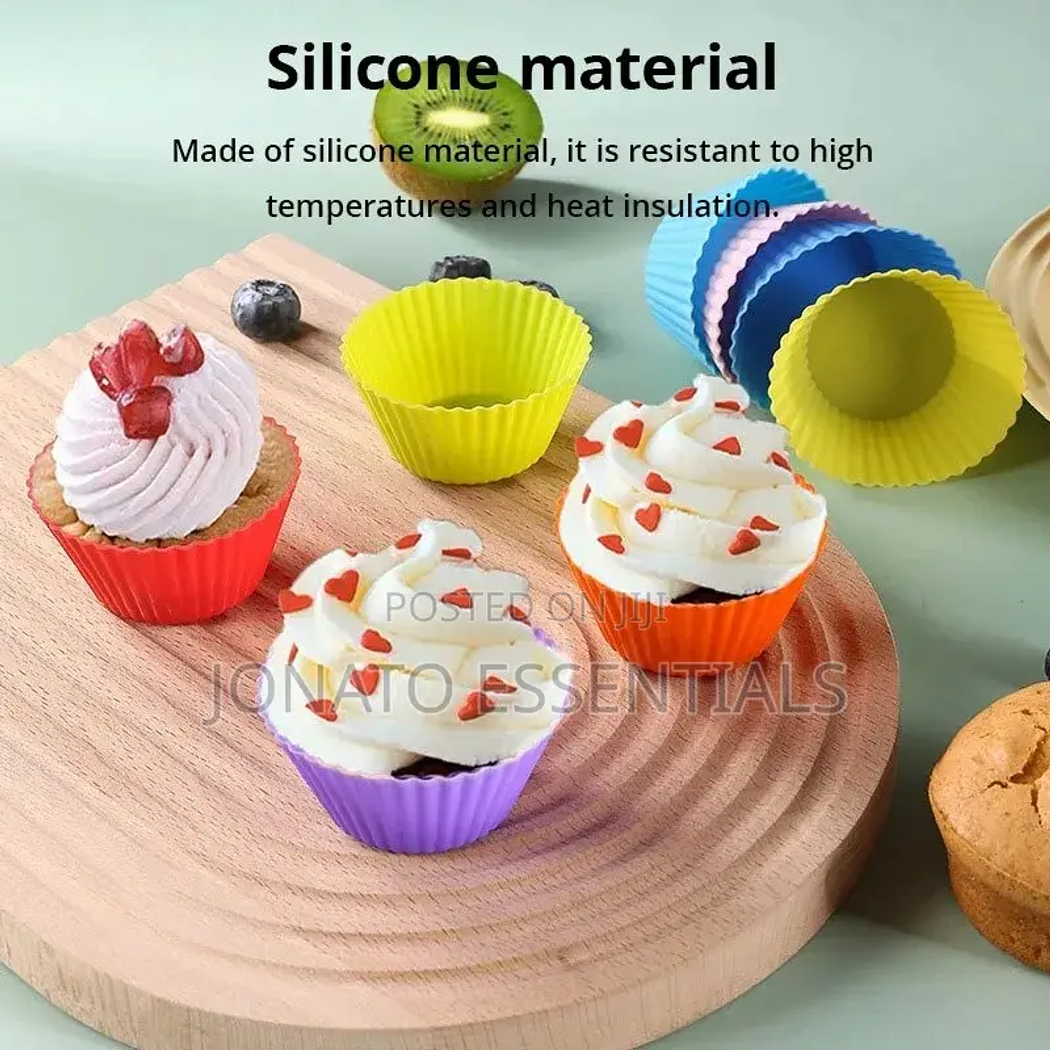 12pcs silicone cake mold round muffin cupcake baking molds reusable diy cake decorating tools wedding birthday party decorations.
