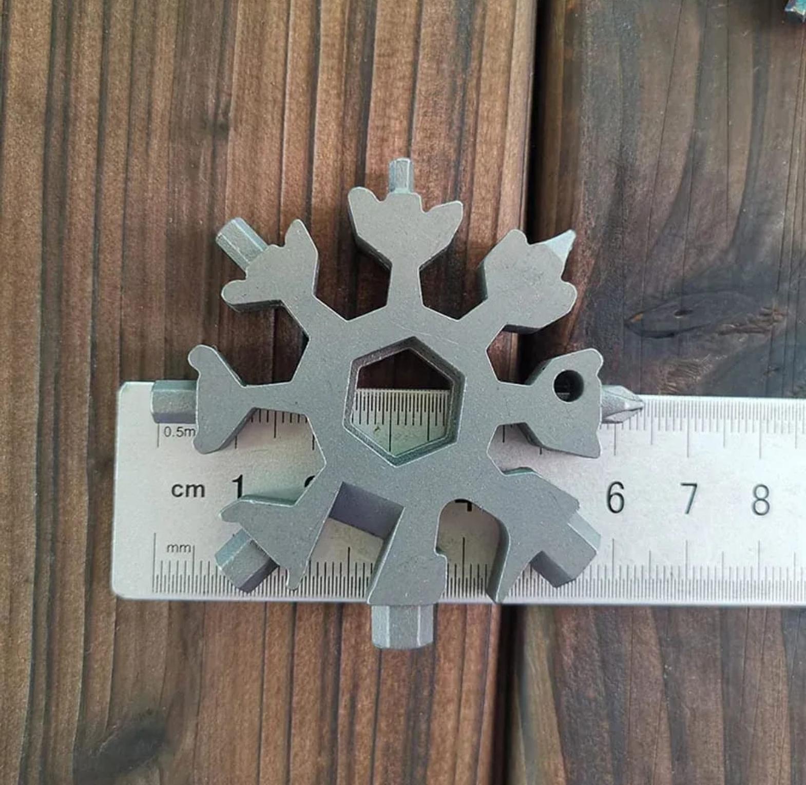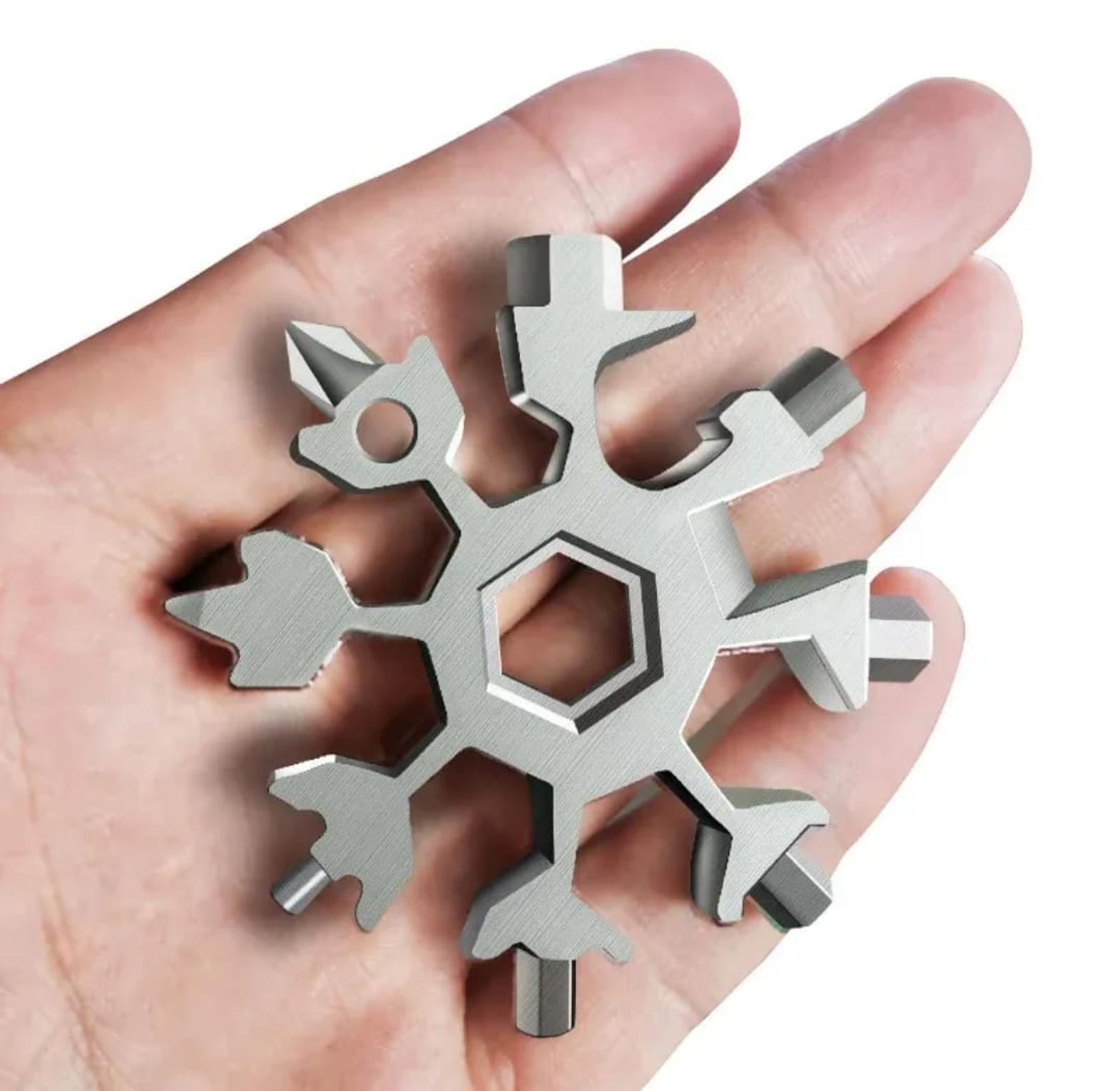 18-in-1 Snowflake Multi Tool with screwdriver, bottle opener, hex wrench, spanner set
