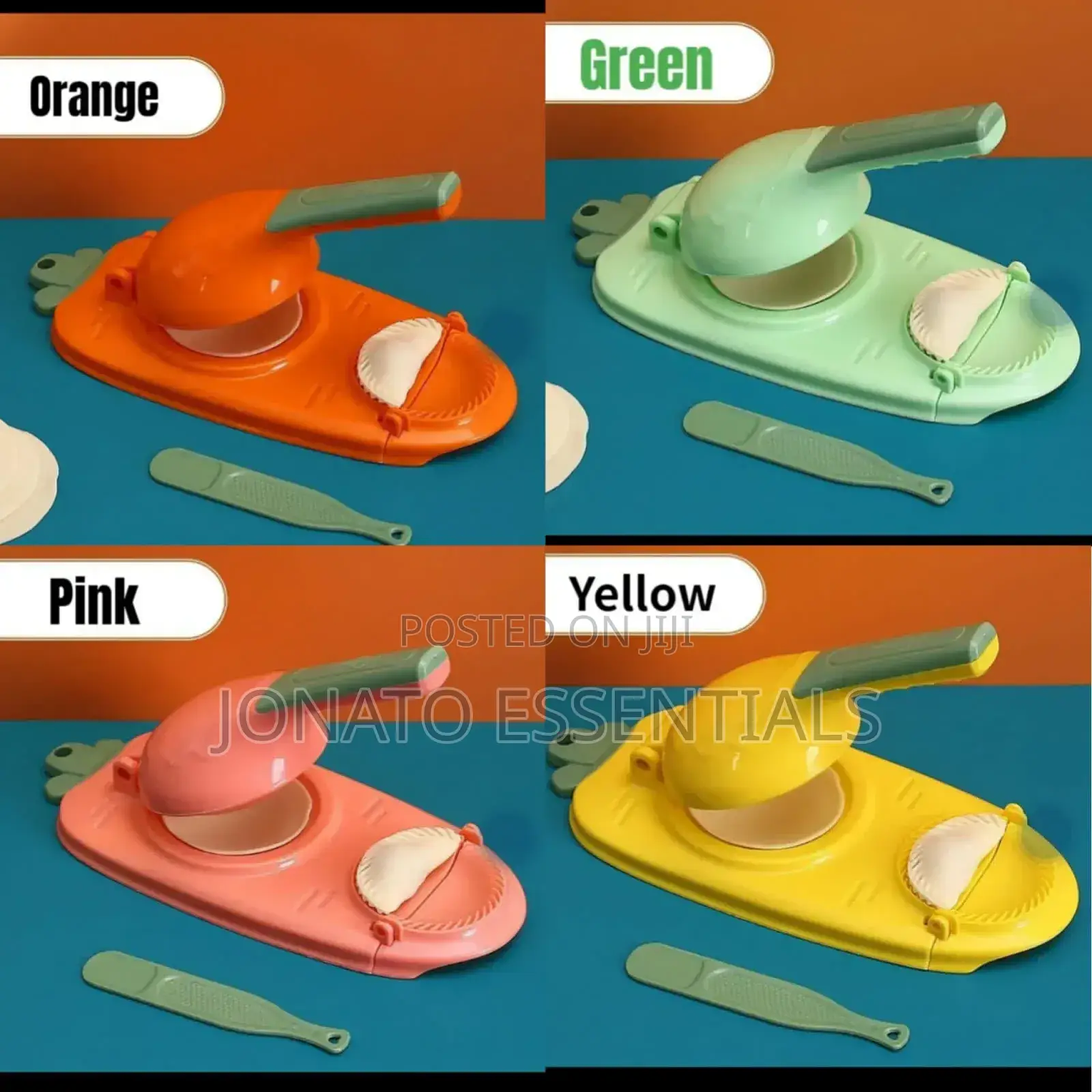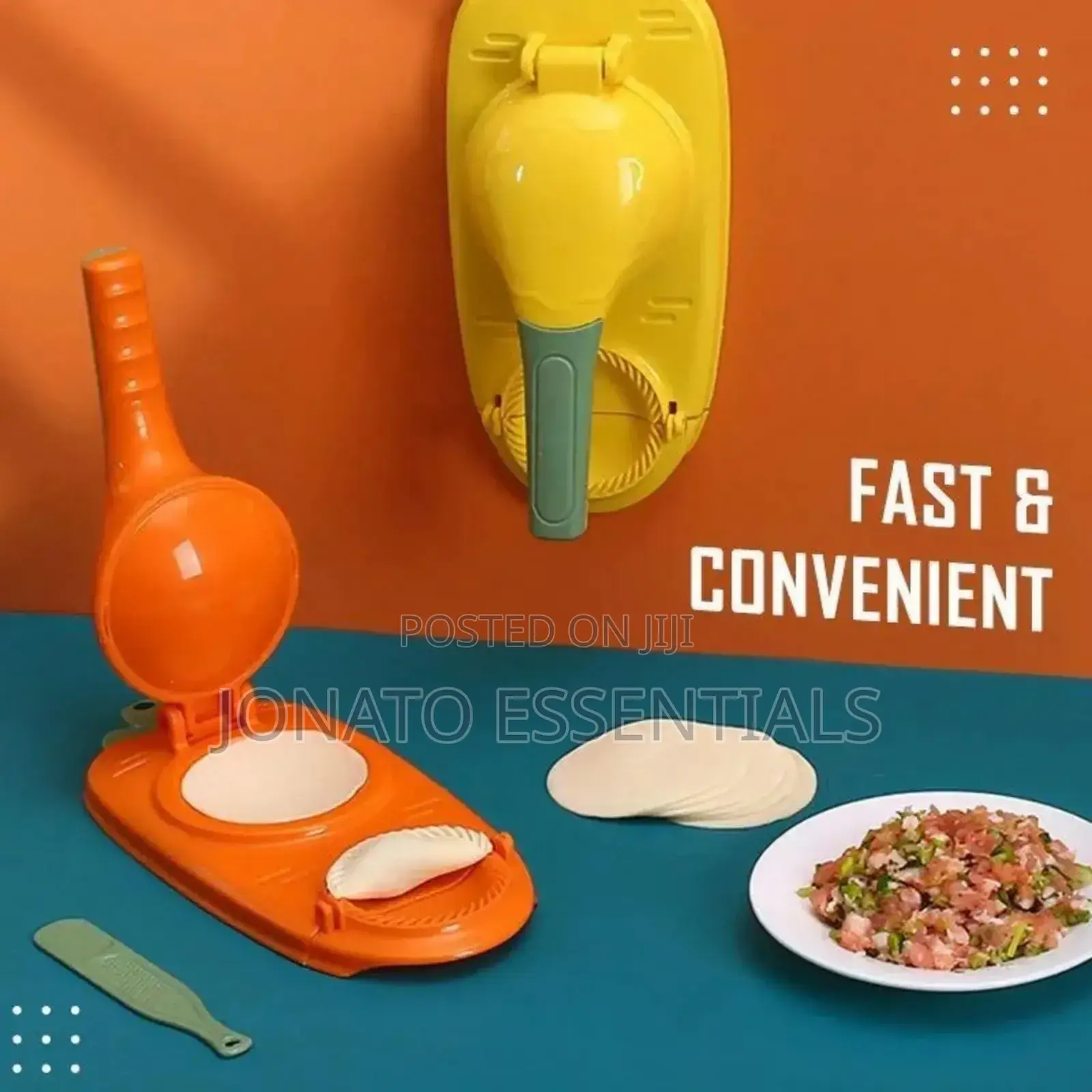 put the dough on the dumpling machine, pull down the handle and press the dumpling skin. put the dough on the surface, add your favorite filling to the dough, then close the mold and press to seal a perfect package.