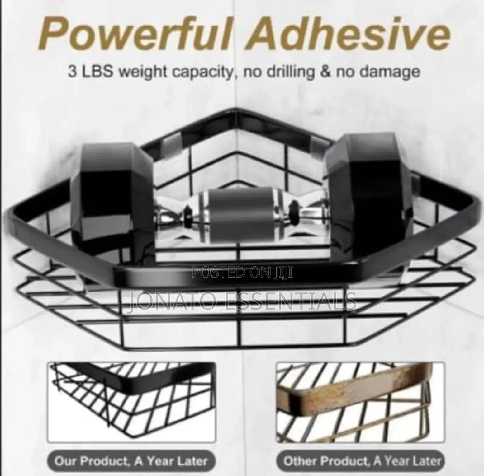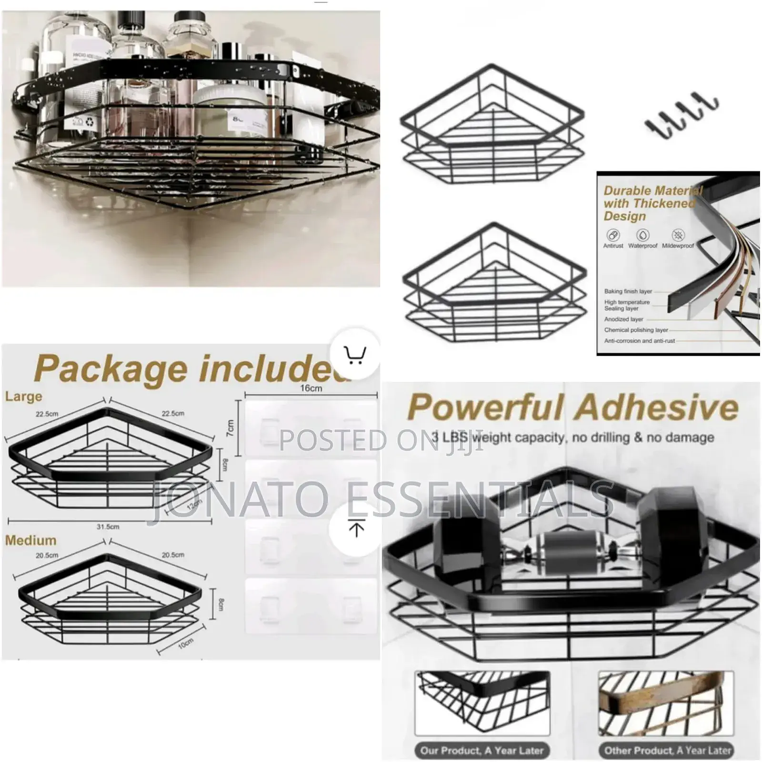 2 pcs bathroom shelf with strong hooks it is wall mounted with adhesive stickers no drilling. simple and elegant design, efficiently creates space and enrichment your home. hollow-out design, convenient for drain water, both great for kitchen and bathroom. the storage rack is perfect hanging on kitchen to storage your kitchen stuffs. also a great bathroom organizer for storage shampoo, shower gel, etc. bathroom shelf wall mounted corner storage shelves shampoo holder cosmetic rack iron shower drain basket bathroom organizer.