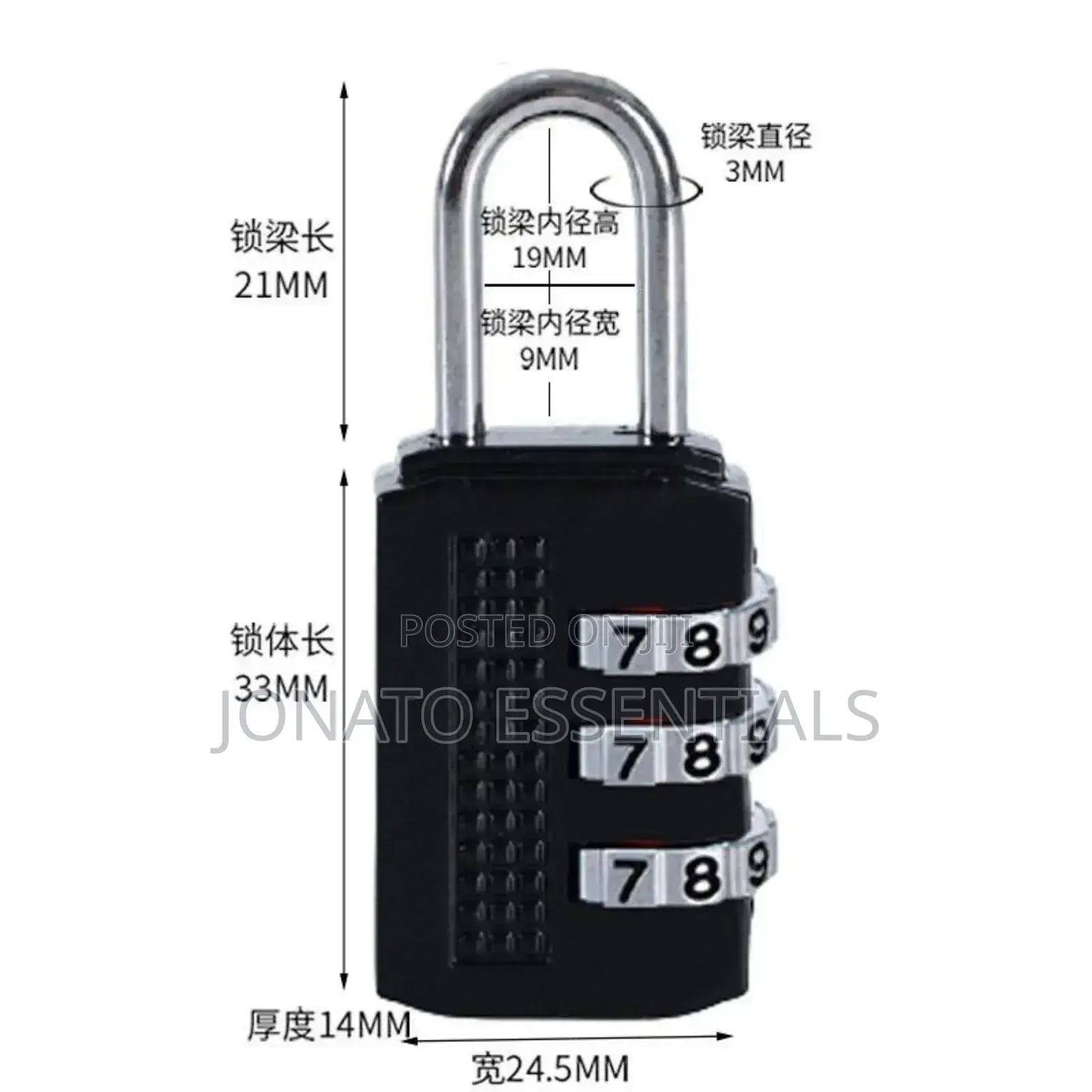 secure your valuables effortlessly with our portable 3 digit combination padlock. this versatile keyless lock is perfect for luggage, travel bags, gym lockers, school backpacks, and small cases, giving you peace of mind wherever you go. easily set and reset your unique numeric code, no keys required. it is an essential accessory for students, travelers, and daily commuters in kenya.