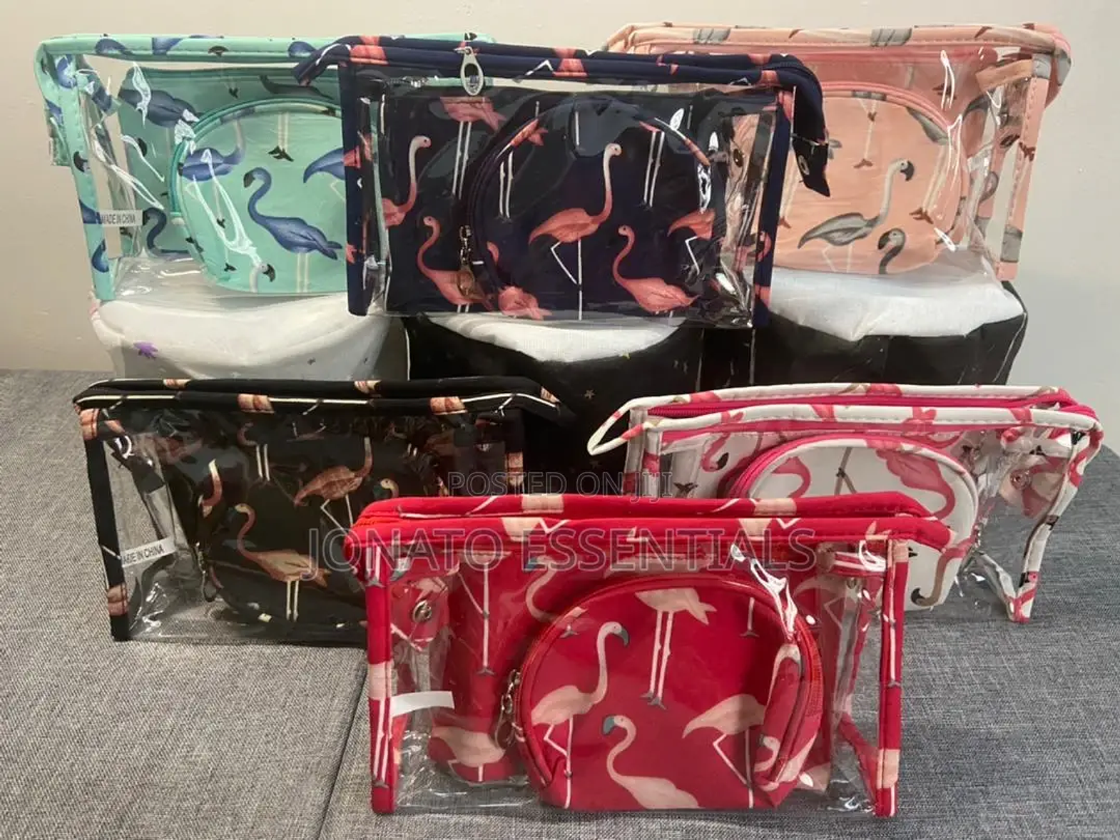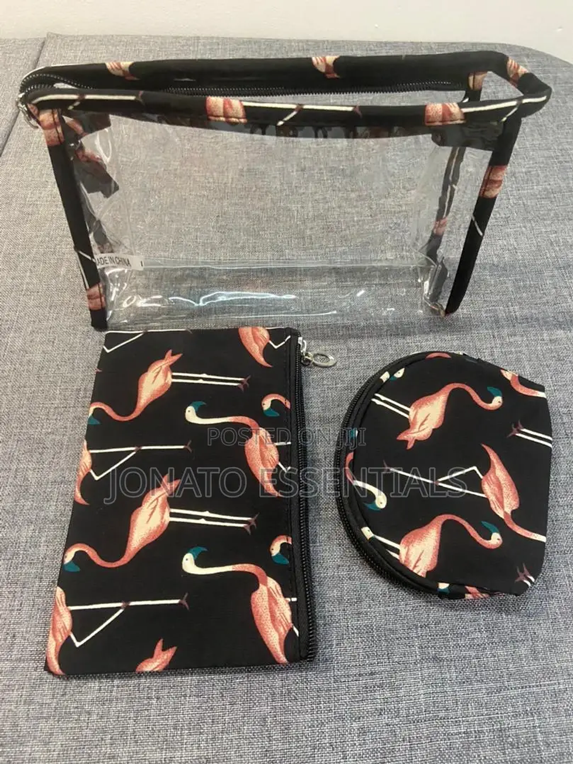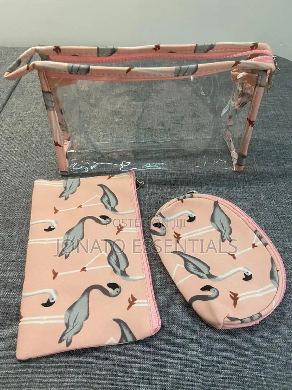 stay stylish and organized with this 3-in-1 transparent flamingo makeup bag set, perfect for storing cosmetics, toiletries, and travel essentials. made from durable, waterproof pvc material, these clear travel pouches allow easy visibility of your items while keeping them protected. the zippered closure ensures secure storage, and the compact, lightweight design makes them ideal for handbags, suitcases, and daily use. perfect for home, travel, gym, and work, these multi-purpose toiletry bags add a fashionable touch to your beauty routine.