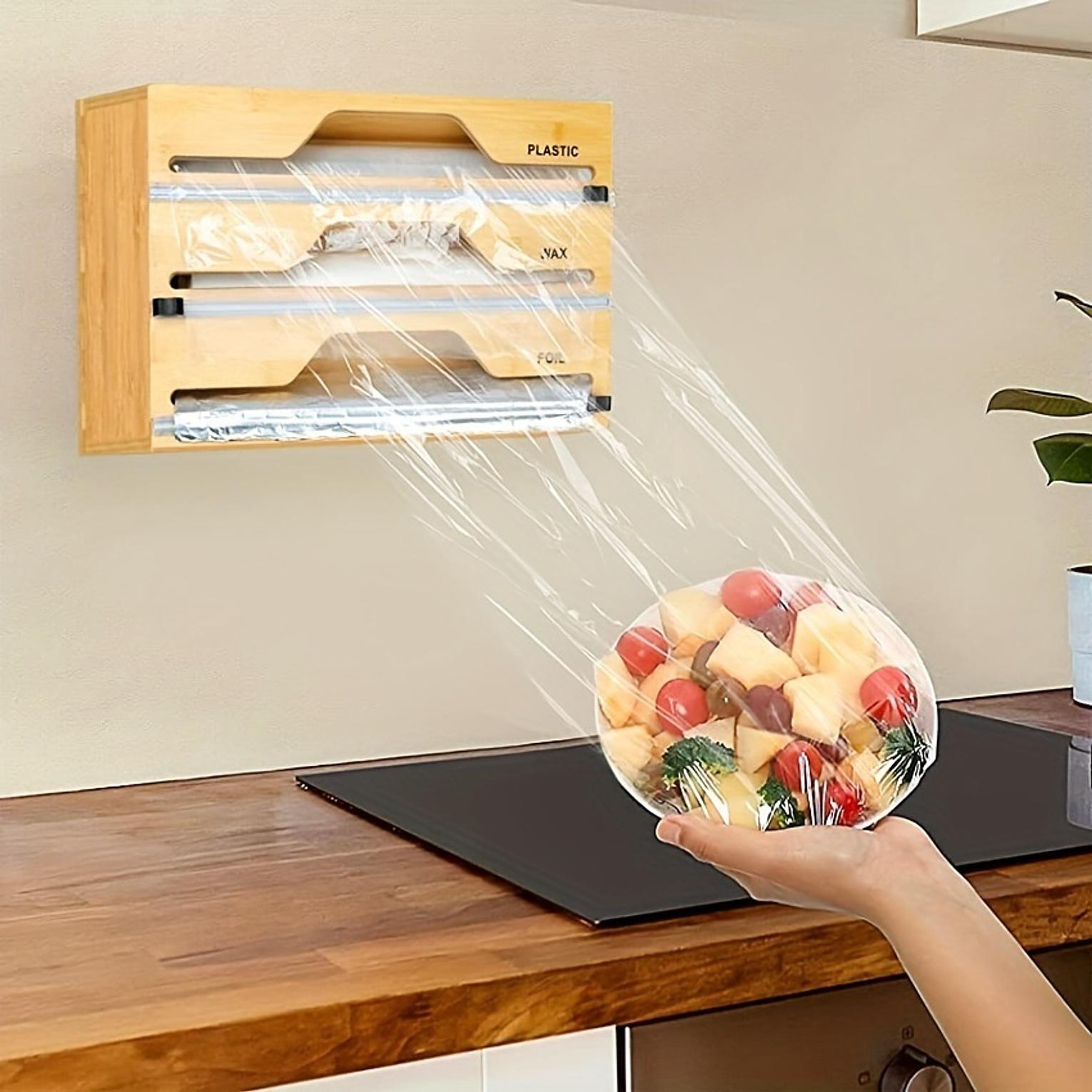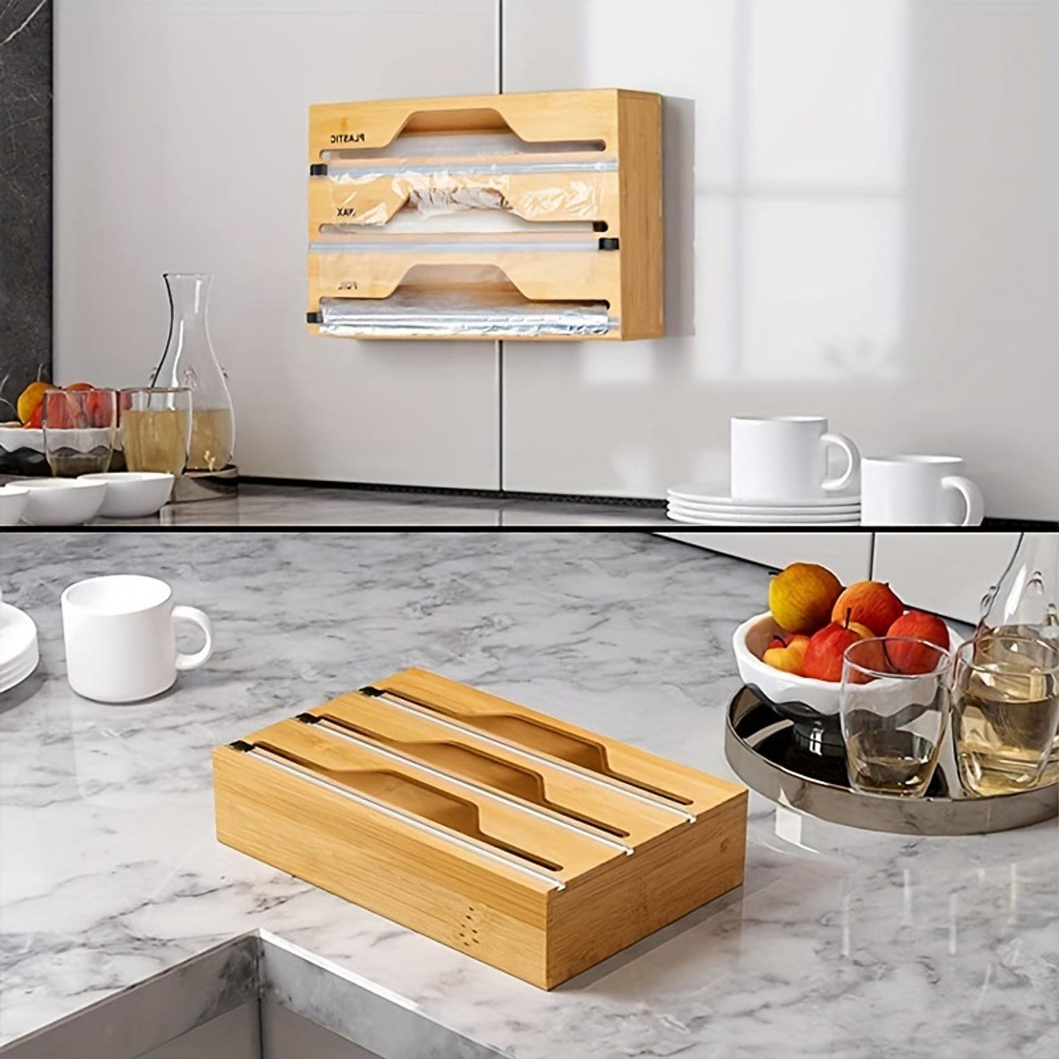 3 layers aluminum foil wrap dispenser can be used to hold or organize film or foil wrap. wood storage box for kitchen drawer easy to cut durable wrap dispenser wooden.