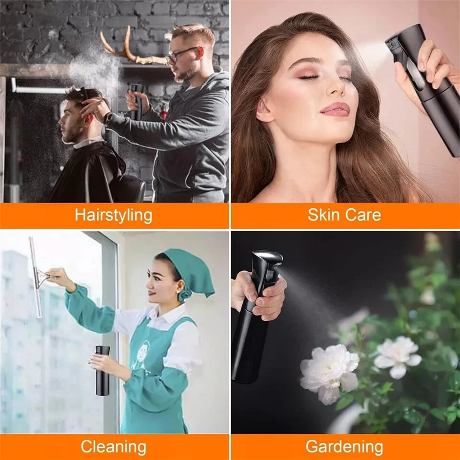 300ml fine mist continuous hair spray bottle perfect for use on human hair. refillable design :as a refillable bottle, it offers convenience and sustainability. you can reuse it again and again, reducing waste and saving money in the long run. semi-automatic feature :the semi-automatic feature of this bottle allows for easy, hands-free operation. simply press the button to activate the continuous fog, making your task simpler and more efficient. gardening disinfection spray bottle beauty hairdressing continuous spray fog bottle semi-automatic continuous fog.