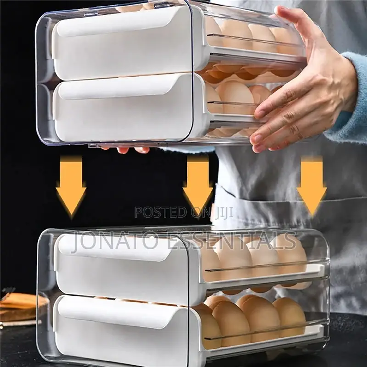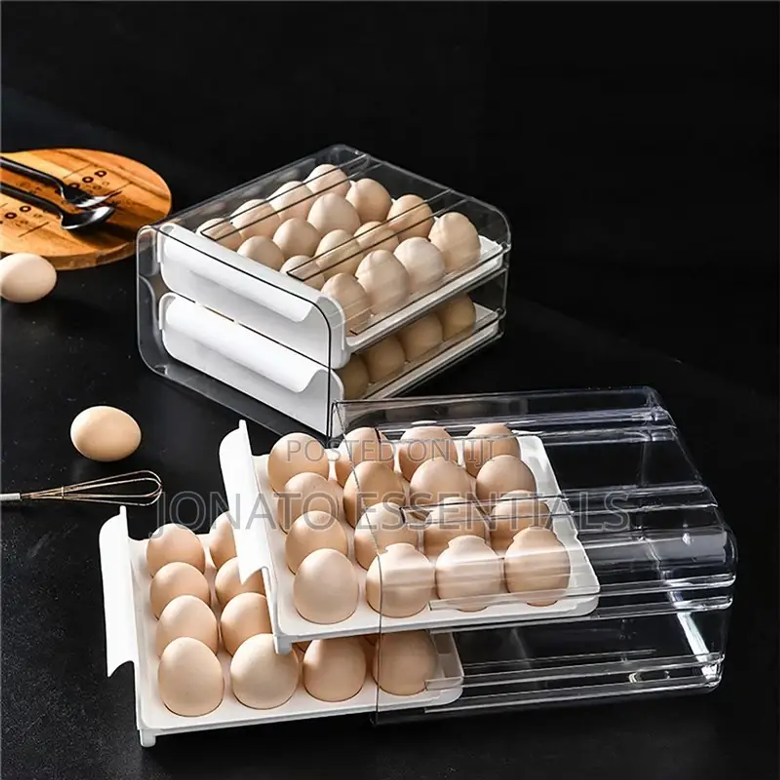 32pcs egg drawer tray, fridge organizer, egg storage box. material :acrylic can hold 32 eggs. egg storage container, double layer egg tray/box.