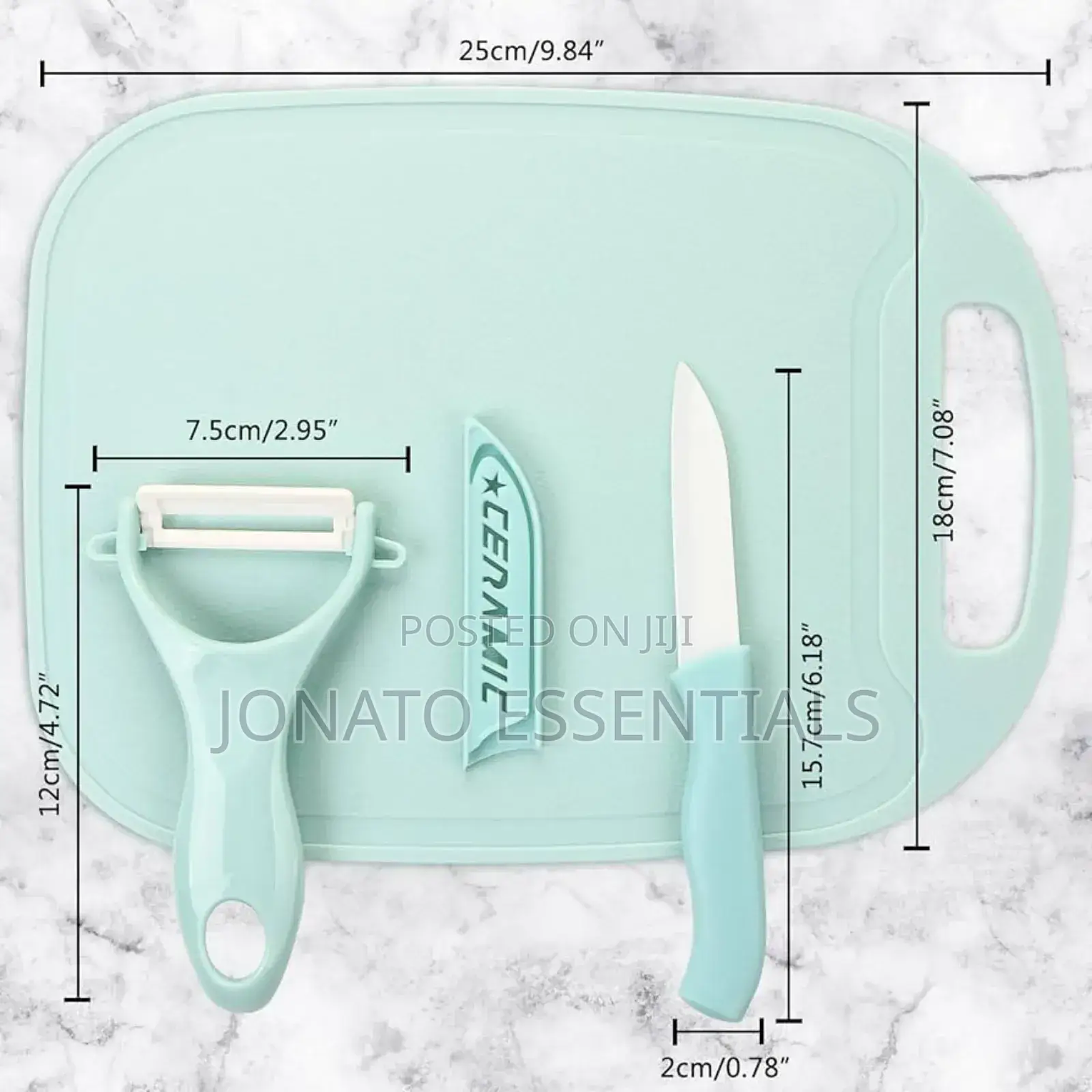 3pc ceramic fruit knife set nordic 3in1 knife peeler chop board this three-piece set includes a fruit knife, a vegetable knife, and a cutting board, catering to all your cooking needs. with a safe angle of less than 60°, these knives are perfect for teaching children the basics of cooking without compromising safety. 3pcs/set ceramic kitchen fruit knife candy color set with cutting board peeler paring vegetable knife children's cooking cutter.