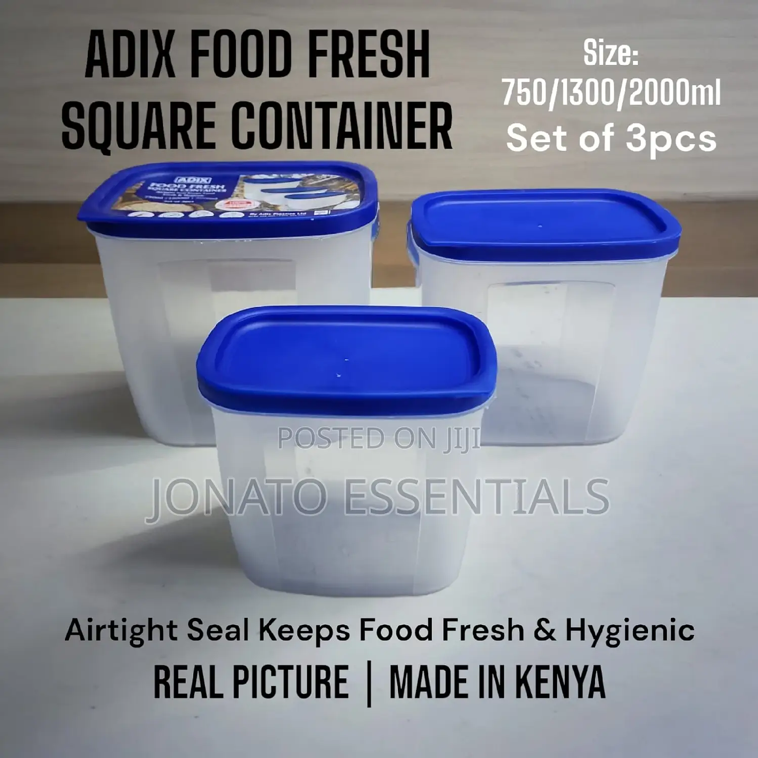 3pc square storage containers set adix food fresh square container comes in 3pcs set. capacity:750, 1300 and 2000ml. can be used to store food or other cereals.