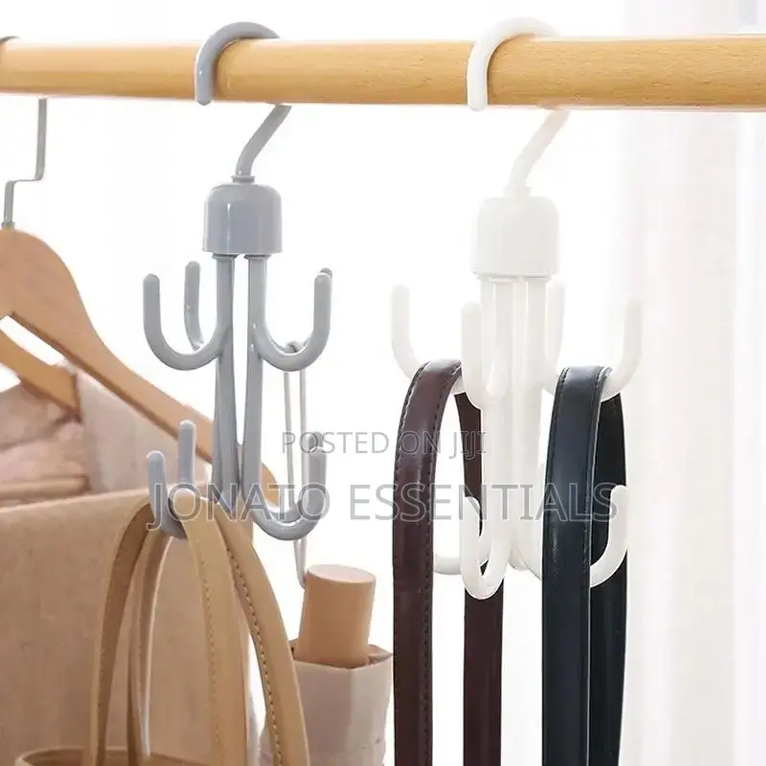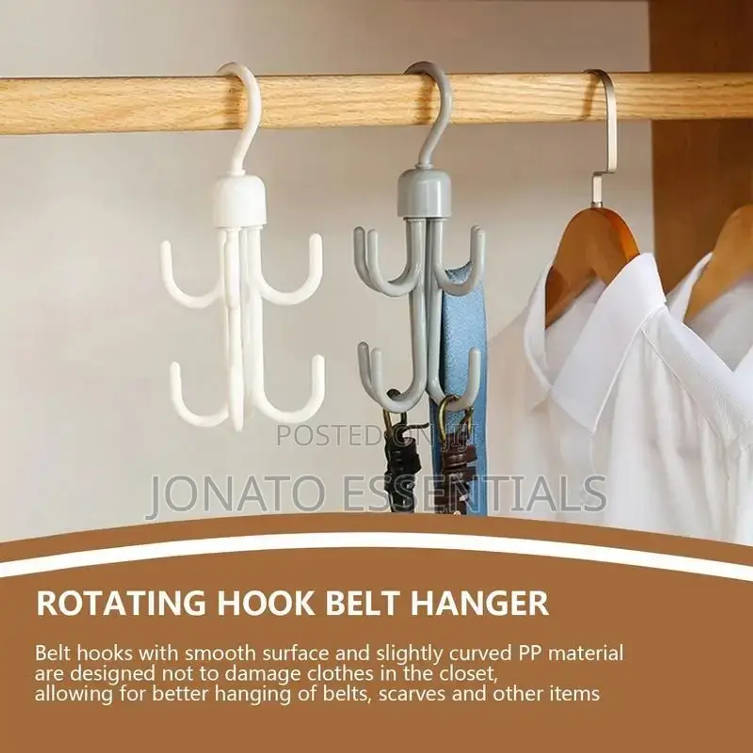 4 claws rotating tie and belt hanger u shaped hanger extensive usage: this belt hanger for closet can store not only belts, but also scarves, jewelry, hats, backpacks, ties and more. it is lightweight and compact, keeping your clothes organized. saving space: this belt hanger for closet has a 4 claws design that can hold belts or other small objects. you can also use it for outdoor drying or indoor storage. 4 claws rotating tie and belt hanger plastic purse hanger closet organizer holder for belts, ties, bag, purse, scarf, clothing