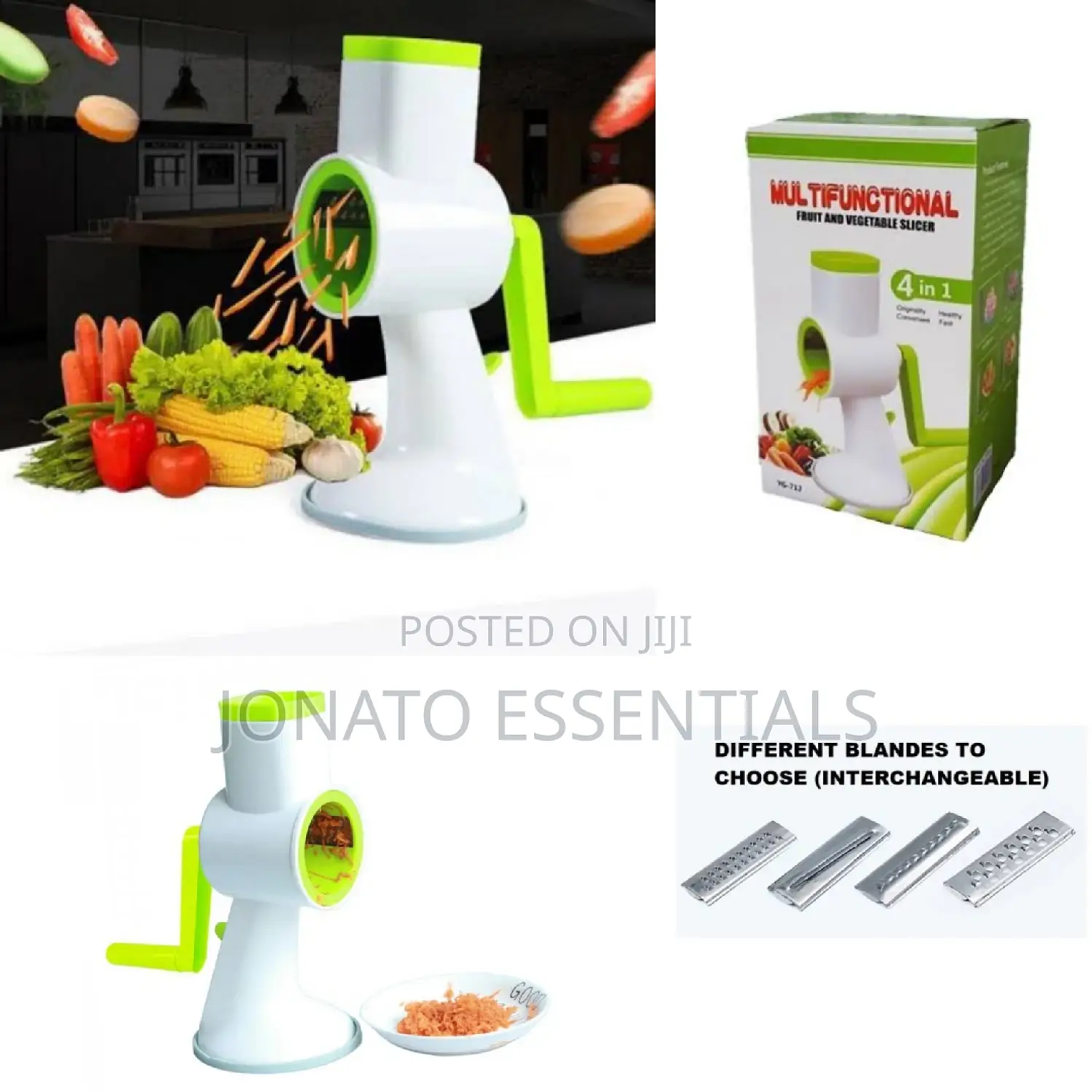 4 in 1 multifunctional fruit vegetable manual slicer grinder suction-base cheese grater for grating cheeses, nuts, breadcrumbs and chocolates and shredding vegetables. suction base grips clean, smooth surfaces securely for effortless operation; drums install and change out easily easy to use; simply insert food into the hopper and turn handle to grate or shred; use the safety pusher to guide food through the grater includes suction-base grater, 5 stainless steel drums easy to clean with warm, soapy water. 4 in 1 multifunctional fruit and vegetable slider manual slicer grinder.