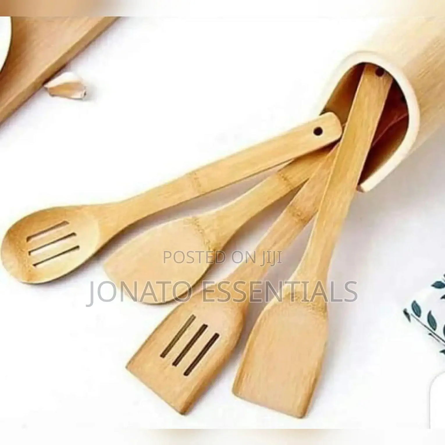 Mwiko set used for cooking and serving. contains 4 spoons/mwikos with stand. 4pcs/set natural wood tableware home meal cooking spatula with storage bucket for non-stick pan kitchen accessories. storage and organization, cookware.